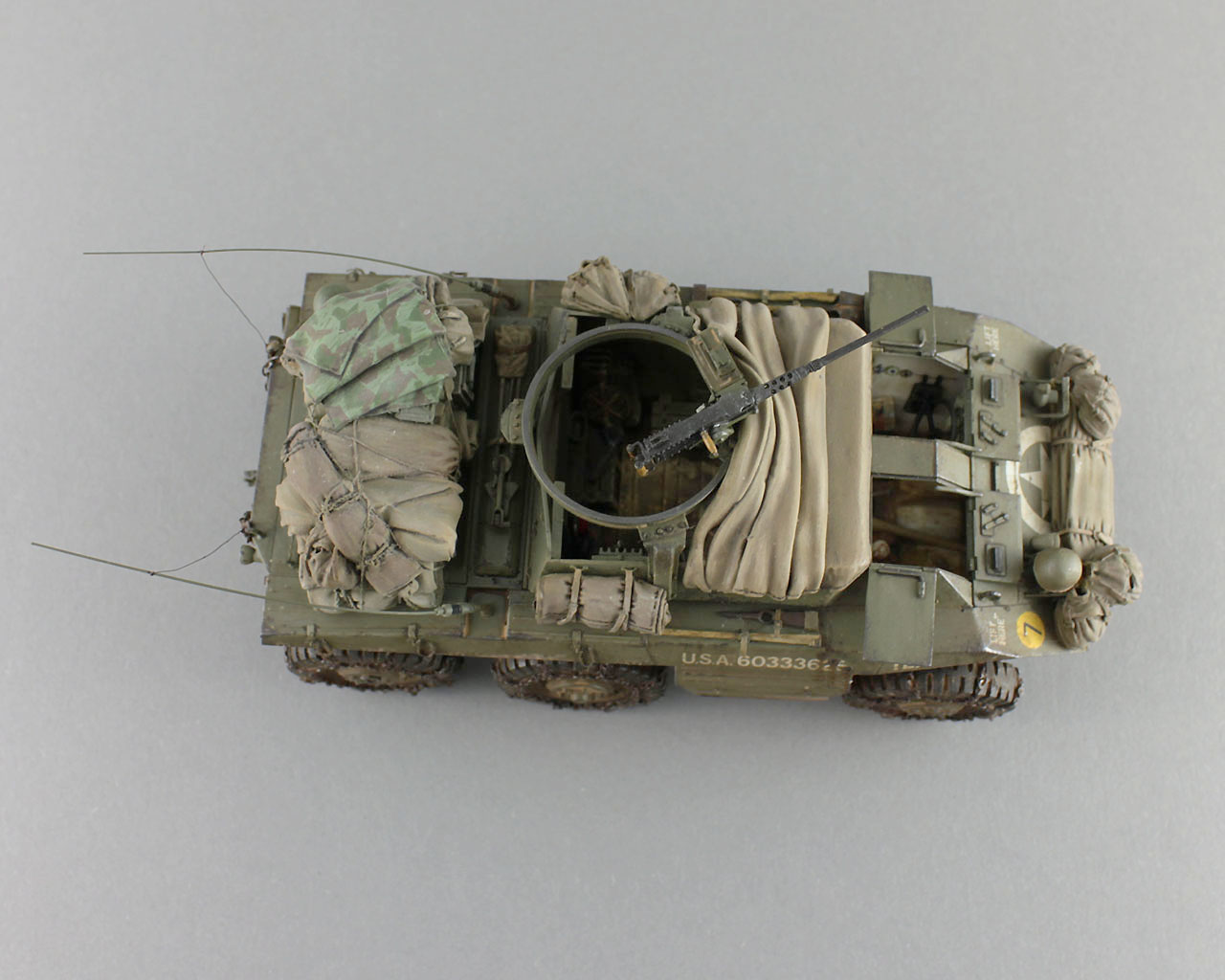 Конструктивно машина не отличались от М8, за исключением демонтированной башни, на месте которой устанавливалась открытая кольцевая турель с 12,7-мм пулеметом. Внутри были установлены скамейки для десанта и даже карточный столик, чтобы солдатам было комфортнее скоротать время в промежутках между боями.
