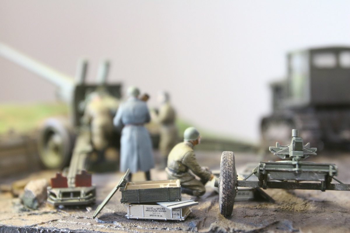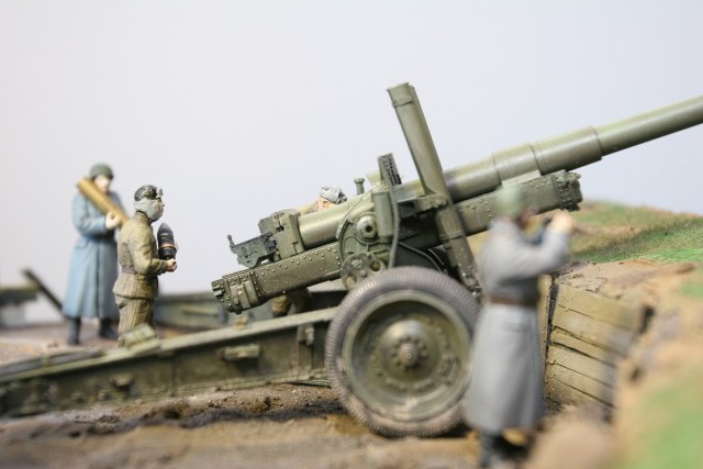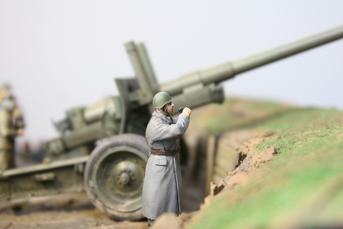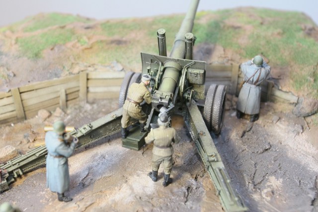 На мой взгляд,диорама"мертвая".Возле орудия запечатлен расчет и ни чего более.Отсутствует одно из главных составляющих композиции-динамика сюжета.Ну,а техника вышла не плохо.Хорошего вдохновения в следующих работах.С уважением.