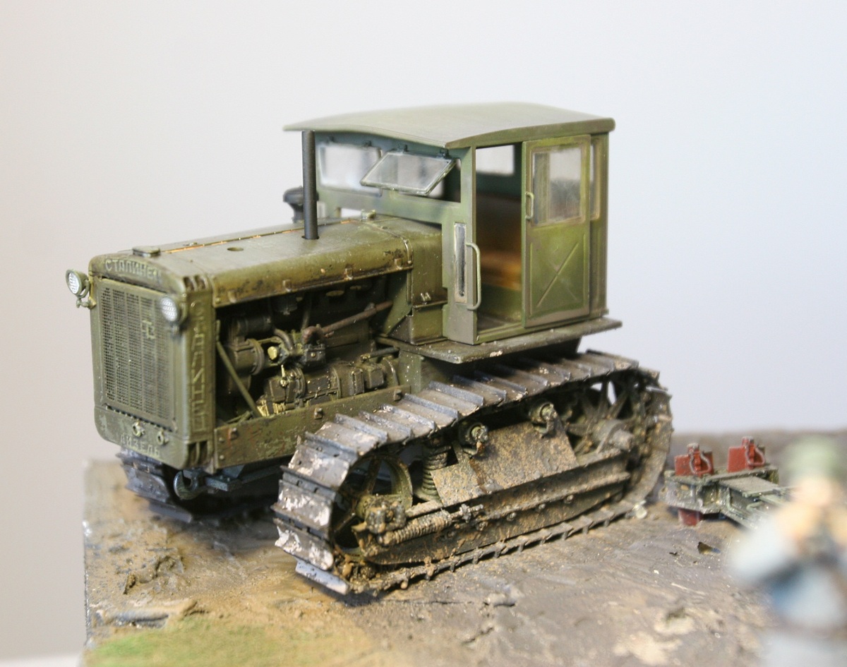 Предлагаю вашему вниманию свою первую диораму. До этого все просто стояло на полке по одиночке. "Сталинцу" я добавил движок от L.Z.Models, они же любезно отливают радиатор с исправленной "И".