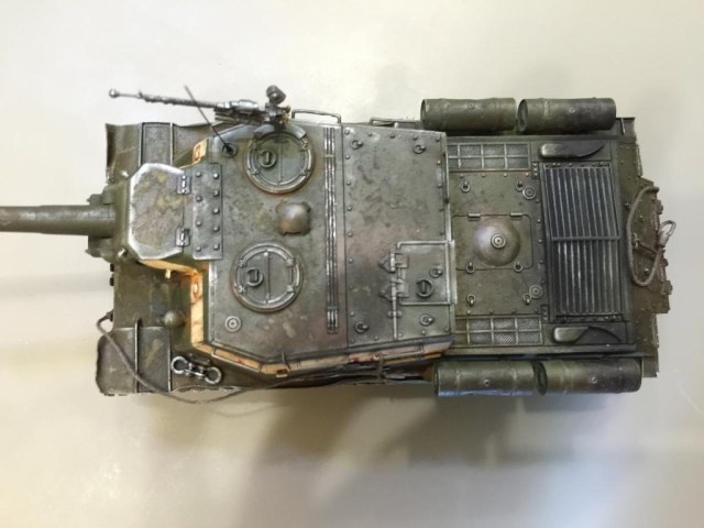 Грунтовал грунтовкой от Тамии, красил Акрилом от Звезды,смывал тамиесвкой черной смывкой,подтеки и следы ржавчины делал Миговской химией,пигменты от Мастер-Пигмент. И, наконец, голова от плеч, руки из-под мышек.