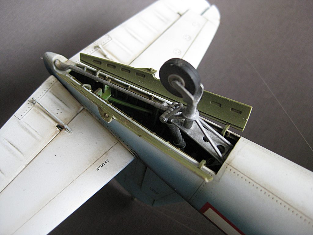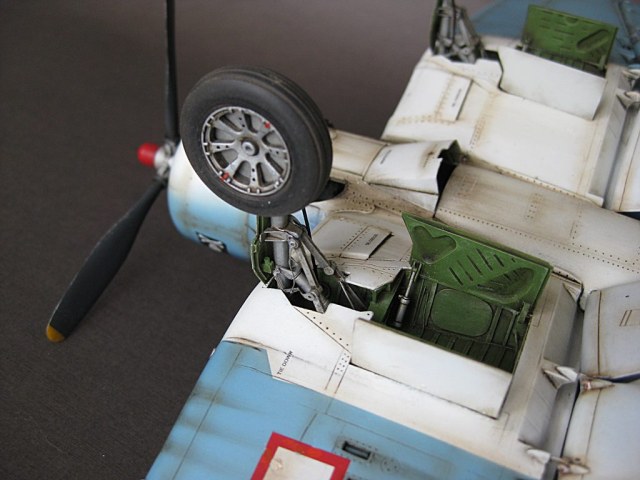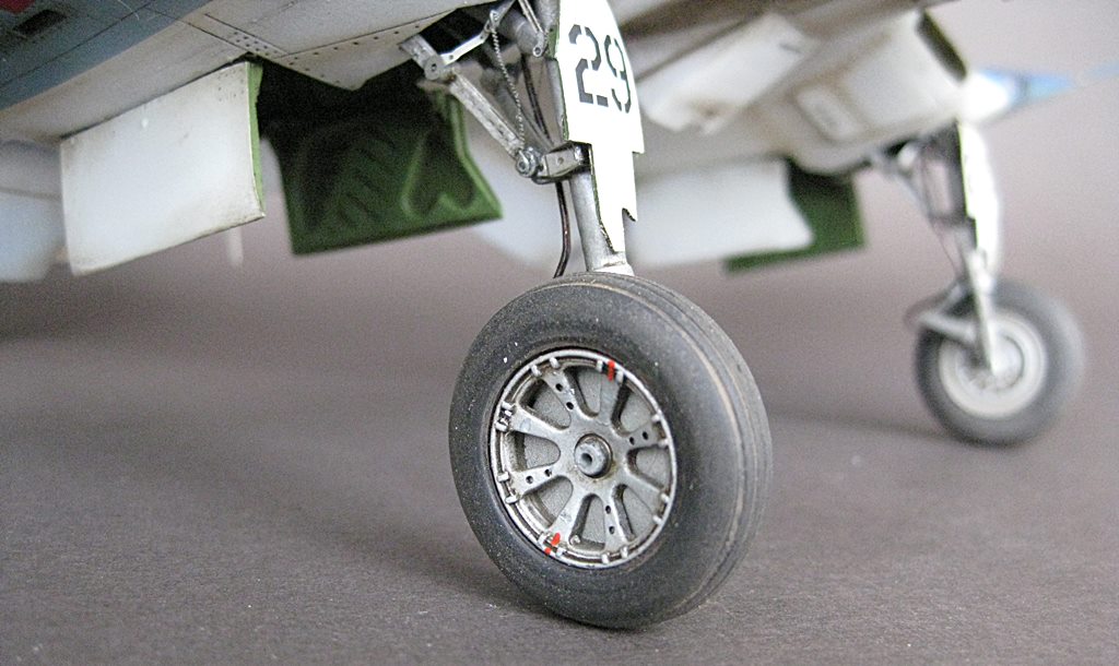 Модель строилась на заказ.Мне она досталась почти собранной.Я дорабатывал шасси-добавил тормозной шланг.При сборке шасси применялась смола и травление AIRES Hobby Models(ниши были готовы я собирал стойки,створки и колеса).