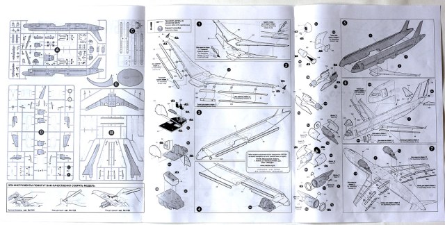 Прикупил новый арбуз от звезды. Качество отливок на уровне всех последних моделей этого производителя. Внутри красочной коробочки находится еще одна из жесткого картона, для тех кто будет заказывать по почте риск повреждения деталей минимален. Внутри 3 литника серых и один прозрачный, инструкция, и унылая дека на непонятный вариант окраски. Я докупил себе декаль Уральских авиалиний отдельно.