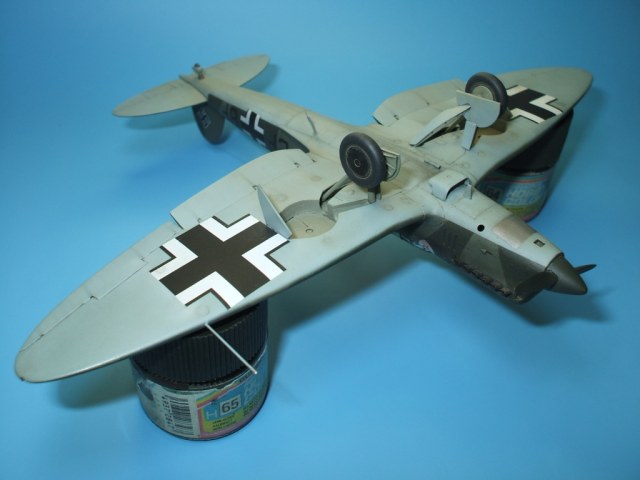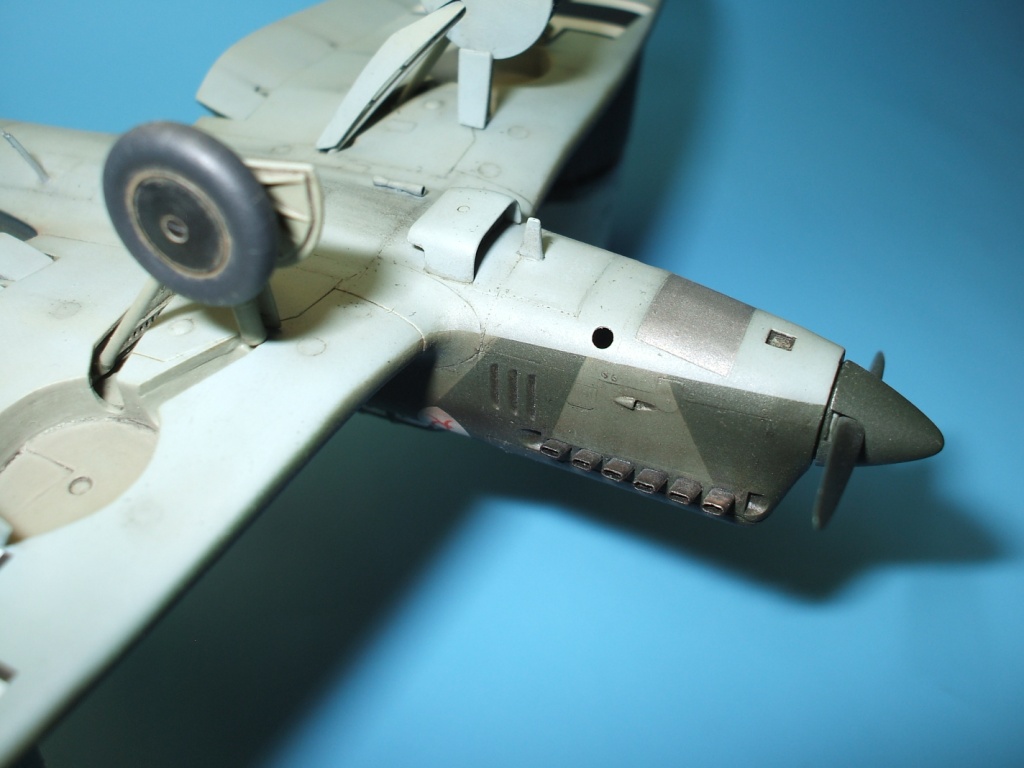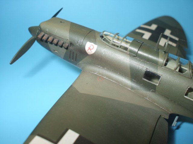 По окраске все как всегда – окраска, футура, декали, футура,смывка, матовый лак, фильтр, футура, смывка кое где, матовый лак, художественные соусы и серебристый карандаш, матовый лак, серебристый карандаш кое где. Делал вариант из коробки – понравились огромные кресты, чему нашел подтверждение(правда не на этот борт). Очень порадовала декаль, замечательно приварилась жидкостями отGS. Вопрос с небольшим смешением цветов на декале был решен при помощи масок и аэрографа прямо на моделе. Для того что б получить как можно больше информации о модели даю исчерпывающее количество фотогафий.