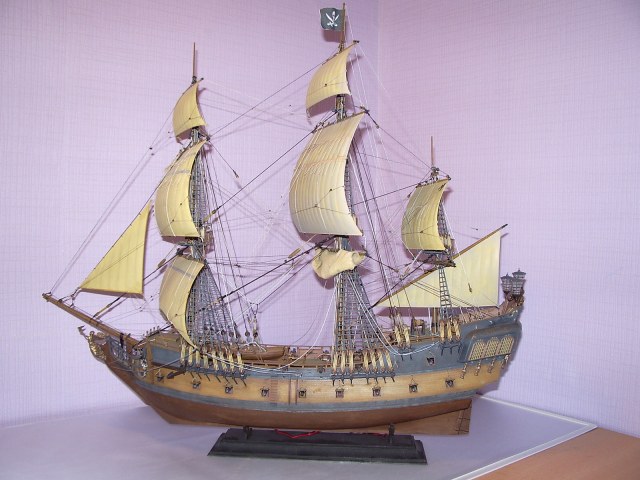 Отличная модель, нестандартное видение - чёрная "Жемчужина" уже как-то приелась. А так нормальный 38-пушечный фрегат, пожалуй французский, но не факт. Отлично вышло.