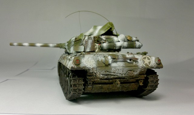 Здравствуйте. Собрал этот истребитель танков (U.S. M-18 Hellcat) в рамках борьбы с долгостроями. Сборку начал еще в 2012 году планировал докупить наборные траки, но время шло, а початая коробка лежала тяжелым грузом на сердце и положительных сдвигов даже не намечалось. До этого лета пока я не решил, что надо собрать любой ценой. Историческая привязка модели к боям в Арденнах.