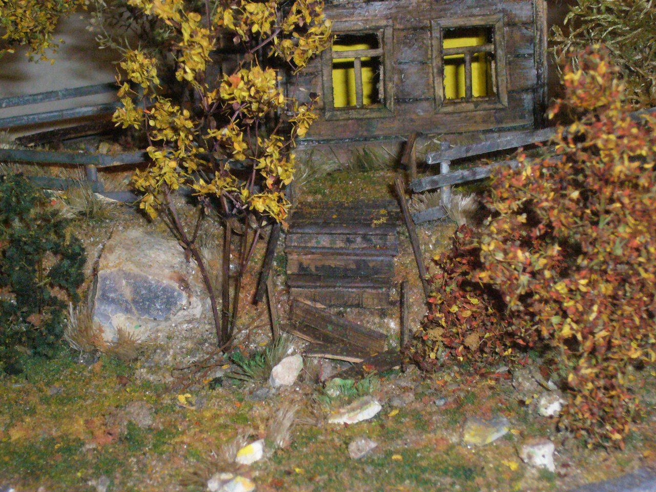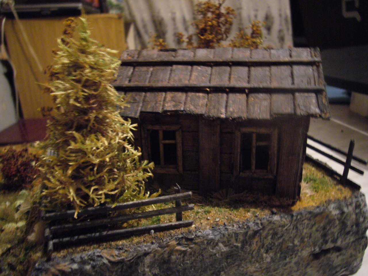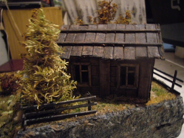 С некоторых ракурсов выглядит довольно зловеще, атмосфера хорошо передана. Про дом уже сказали, от себя отмечу, что надо подставку тоже оформлять - неровные торцы основания изрядно портят всё.