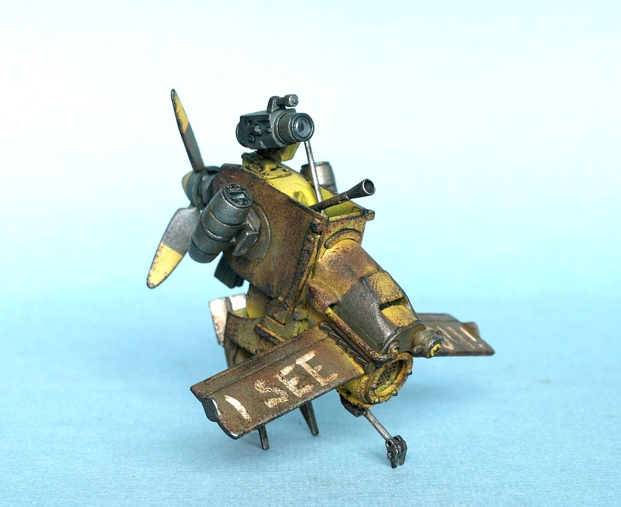 "Вжик", безпилотный летательный аппарат. Летает за счет винтовой тяги и 2-ух реактивных "свистков". Использует ядерное топливо. Вооружен крупнокалиберным пулеметом, так же имеет возможность нести небольшие ядерные бомбы разной силы. Имеет неплохие "органы" зрения\слуха, полученная информация транслируется в Мустанг на монитор оператора. Управляется оператором или же автономно следует поставленному сценарию (патруль\защита\нападение\бездействие).