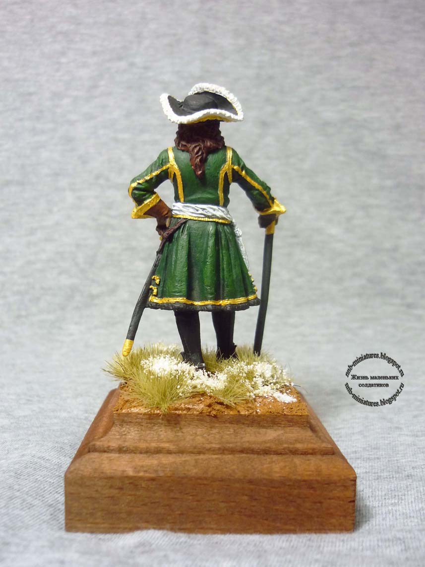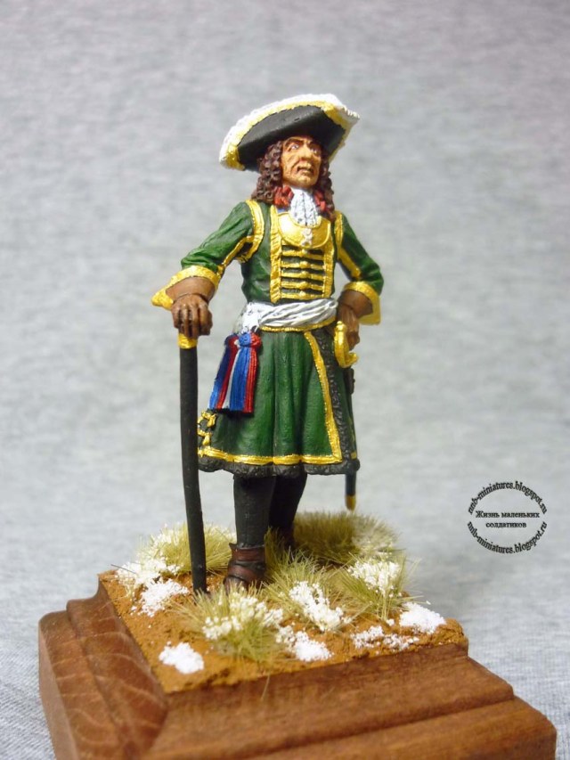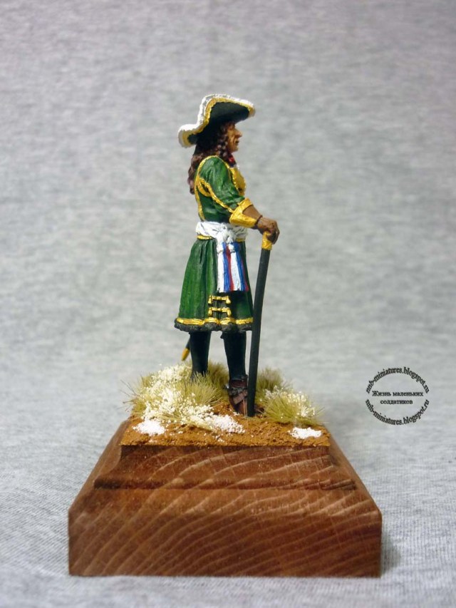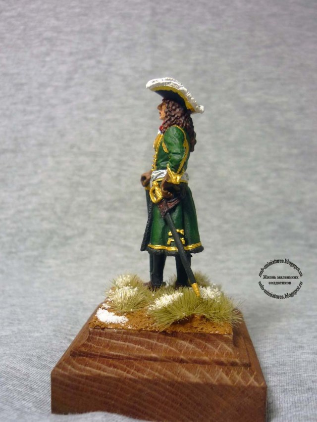 На данной фигурке пробовал русский зеленый цвет мундира. Краски все те же - акрил от Ладоги. Только золотой от Vallejo.