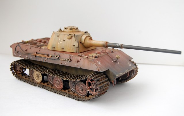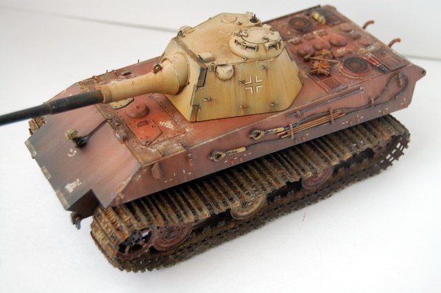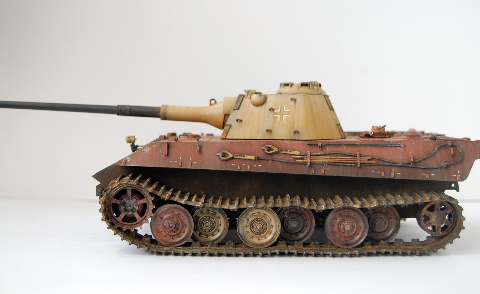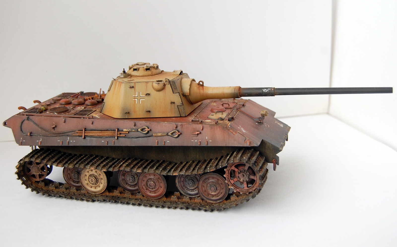 Доброго дня коллеги. Представляю мое видение Е50. Набор от трумпа не плох, но бедноват как то. Посему я решил немного его приукрасить травлеными замками шанца. Травленые Сетки МТО в сборе имеют толщину около 2 мм и сделать их вровень с плитой у меня не получилось тк плита мто монолитна и пришлось бы вырезать гнезда под решетки... короче я не стал пилить). Зделал внешние катки парными взял из за гашника от тантеры G. Метал траки чернил купоросом с электролизом. Сказу честно что траки сложной фактуры довольно геморойно чернить тк пузырьки воздуха ну никак не хотят уходить, даже прессинг жесткой кистью не особо помог. ну как то так. В основном же все стандартно ; покраска тамия, пигменты миг, и разная химия от АК, сухие деки от "W"- приколькая вешь кстати)