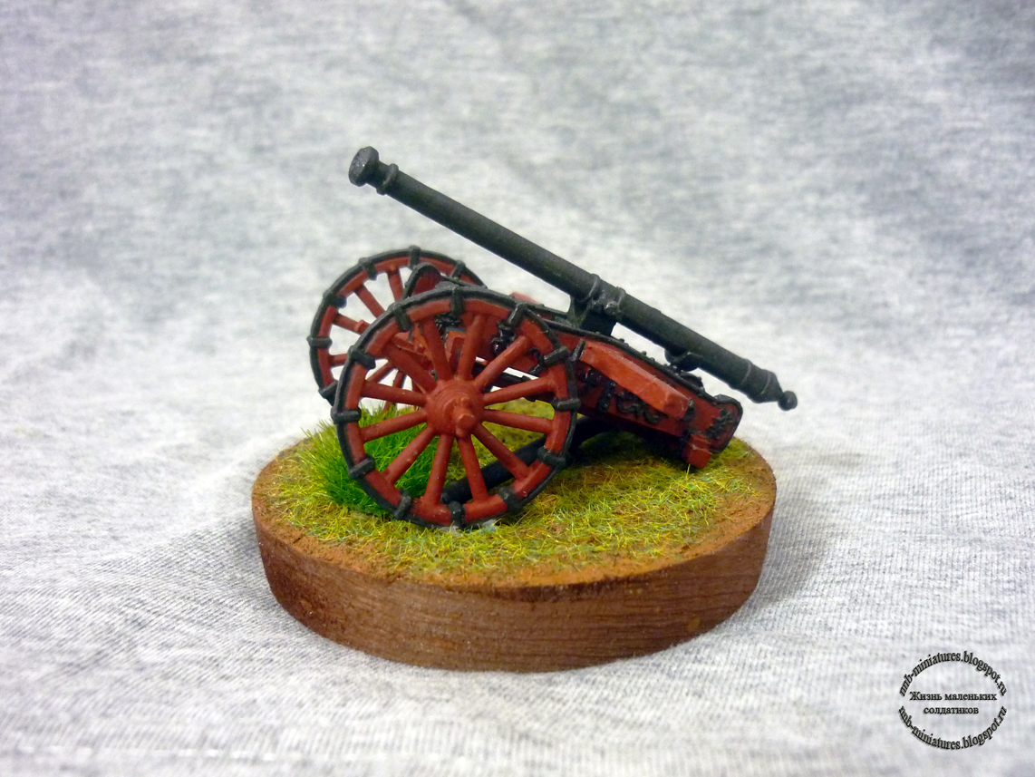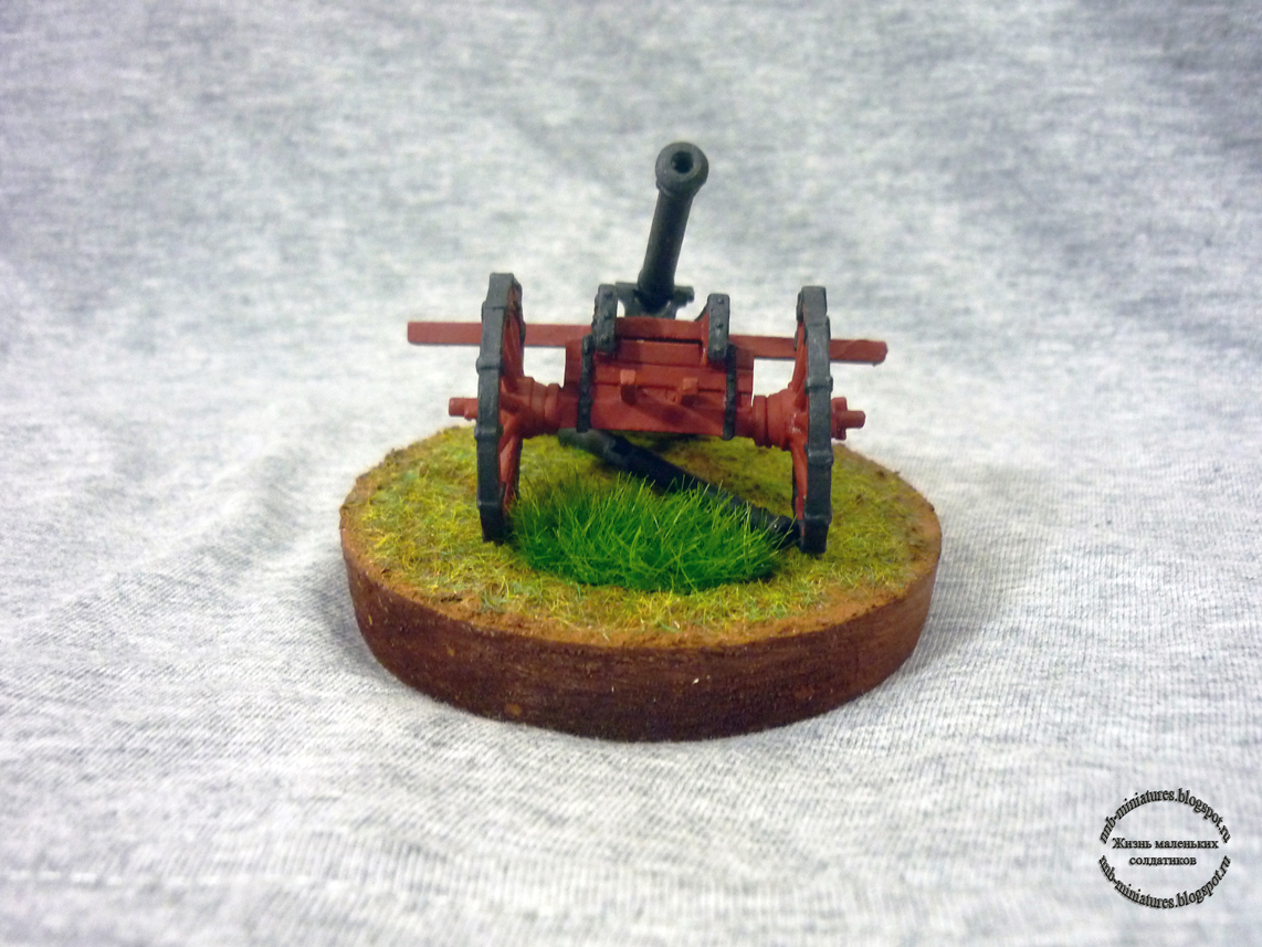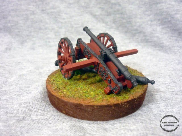 Вторая моя пушка. Масштаб 40мм. К пищали прилагалось два ствола разного калибра. Какой лучше поставить я так и не решил. Поэтому сделал его съемным. Получилось два в одном.