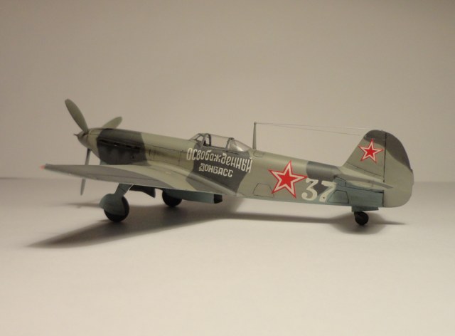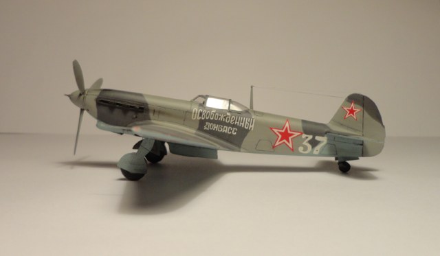 Вот готова и ещё одна модель. Модель собрана к Дню освобождения Донбасса от немецко фашистских захватчиков. Этот день, у нас отмечают скромно но о нём помнят всегда. Донбассу, в период оккупации пришлось пережить почти 700 страшных дней. http://dn.archives.gov.ua/articles/stat44.htm. По всей стране, люди собирали средства на приобретение вооружения что бы ускорить разгром противника. Не остались в стороне и жители Донбасса. В апреле 1944 года 12 истребителей с надписью "Освобождённый Донбасс" получила 3 эскадрилья 267 иап, в которой заместителем комэска был старший лейтенант Тормахов Дмитрий Дмитриевич http://airaces.narod.ru/all9/tormahv1.htm. Мне посчастливилось сделать модель его самолёта.