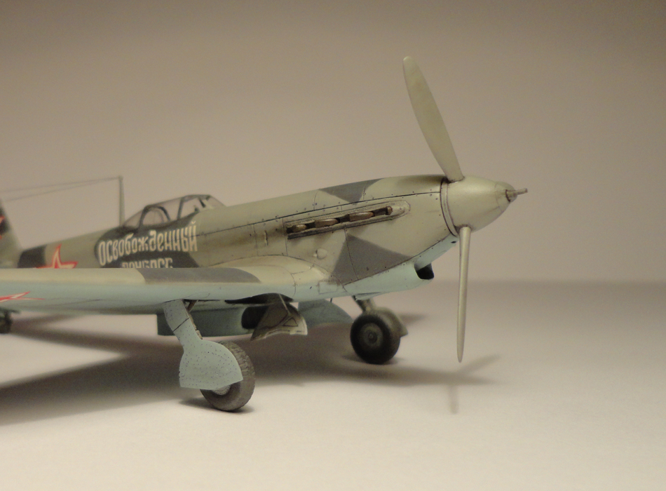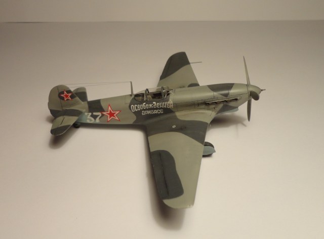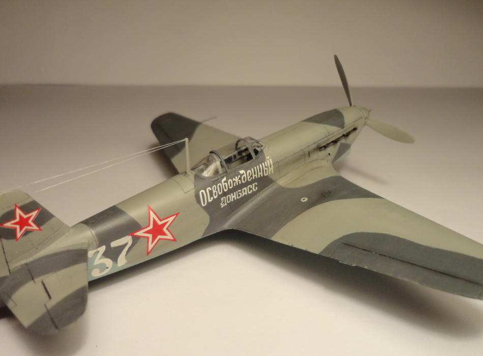 Краски Humbrol, лак и пигменты ХоМа, смывка Vallejo. Бортовые номера и надписи - деколь Восточный экспресс ( эта деколь и стала причиной такой переделки ), звёзды с деколи ICM для Як-9 , за что ещё раз скажу спасибо Евгению Штайнер.