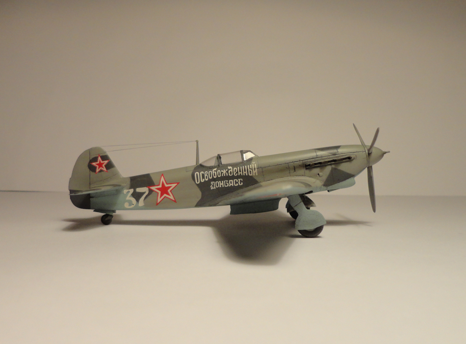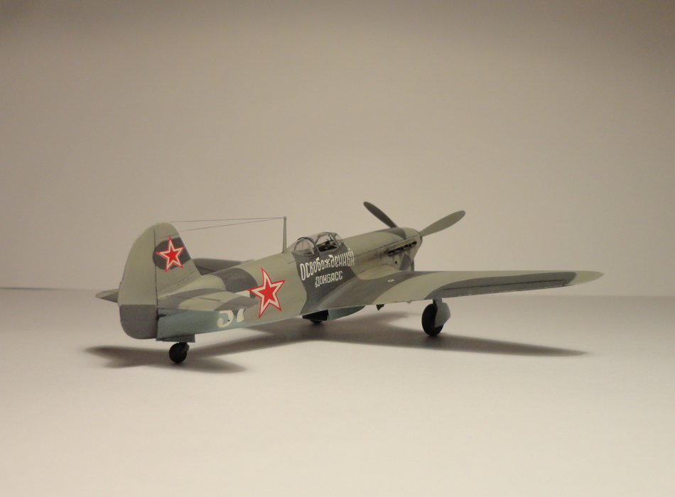 Замечательная работа! АМТ-11 уже обсудили. Ещё хочу пару слов сказать про пятна камуфляжа. На фото настоящего "Донбасса" мало что видно, но вот если пролистать фотки других Яков-9, то можно отметить одну закономерность. Заводские маляры видимо все-таки пытались по возможности передать угловатость пятен наркоматовских "ломаных" схем окраски. Это не в качестве конкретной критики, скорее "мысли вслух" на тему окраски отечественных истребителей.