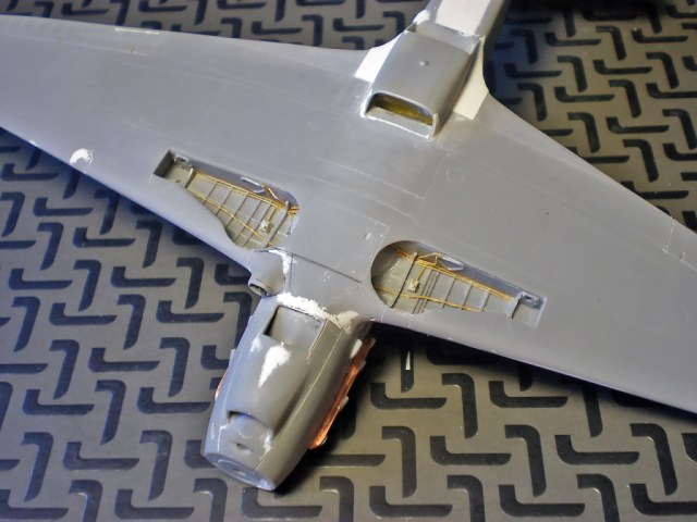 Провел ряд доработок, по фото все видно, чтобы подогнать под Як-1б 1943года. Средняя часть фонаря - давленная, задняя подогнана из Як-9 АРК. Сделаны с нуля створки шасси и створки ВЗ.