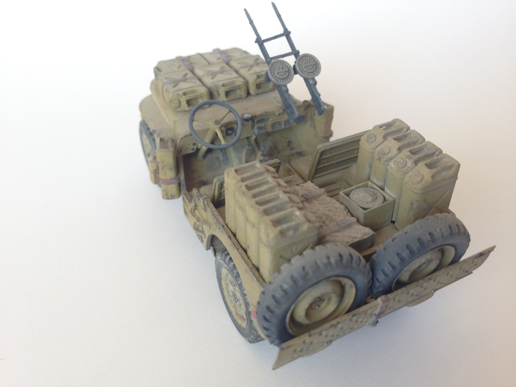 Приобрел данный наборчик случайно-цена подкупила.И собирал его без особого упорства просто чтоб отвлечься,хотя колеса и канистры заставили по потеть. От себя исправил лишь фары и добавил шланг от расширителя.