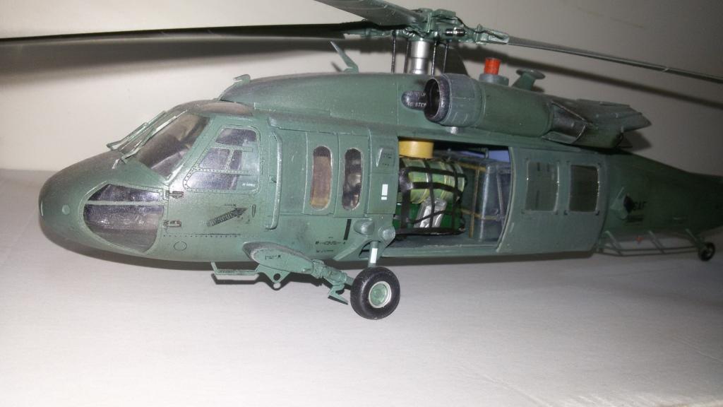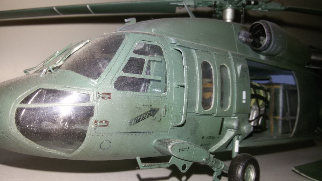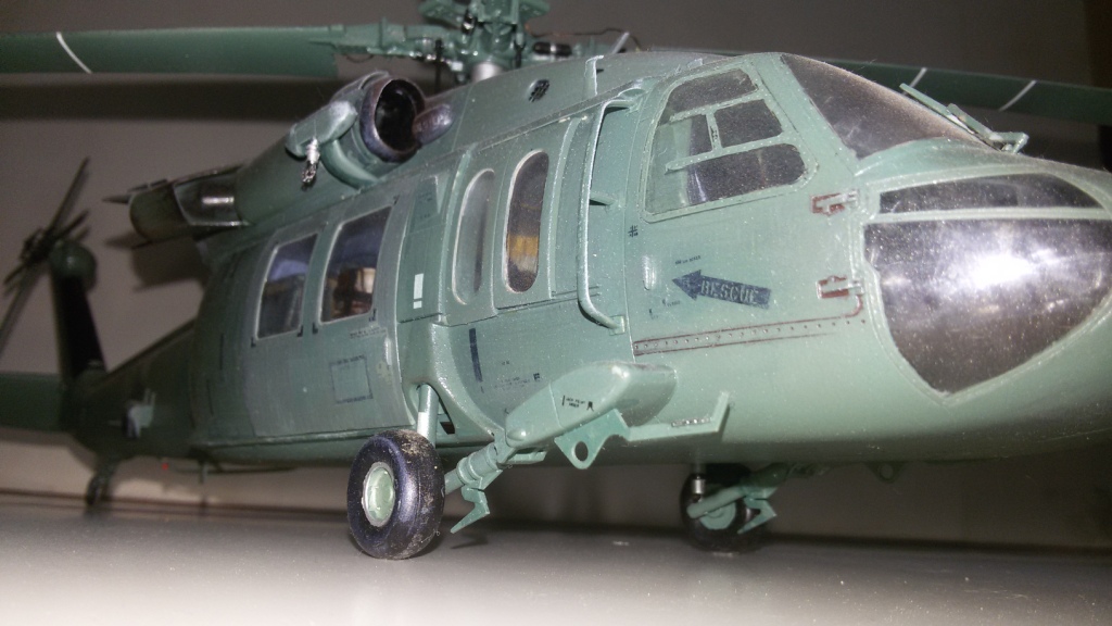В плане окраса - промах. Если хотели просто окрасить в первый попавшийся оттенок зеленого, то тогда понятно. Но что касаемо реальных Блэкхоков то увы......плюс блеск модели - Блэкхоки матовые. Если этого не считать и учитывать то что сам набор средненький то модель удалась, а вот фото - никуда не годятся. Насчёт заглавной фотографии вообще не в тему - это фото коробки набора "Пейв Хока", машины для ССО (да и камуфляжные они, трехцветные). Вы же представили работу как UH-60.