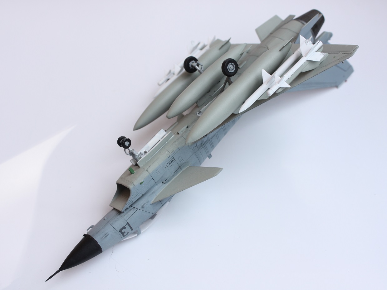 Красилась модель красками mr.Color №307 и №11. Лак АК, поверх него - смывка пастелью. Вероятно, лак лёг плохо, потому как смывка с трудом оттиралась, и местами так и осталась. Самолёт получился "грязноватым", что не к месту - на фотографиях все борта весьма чистые.