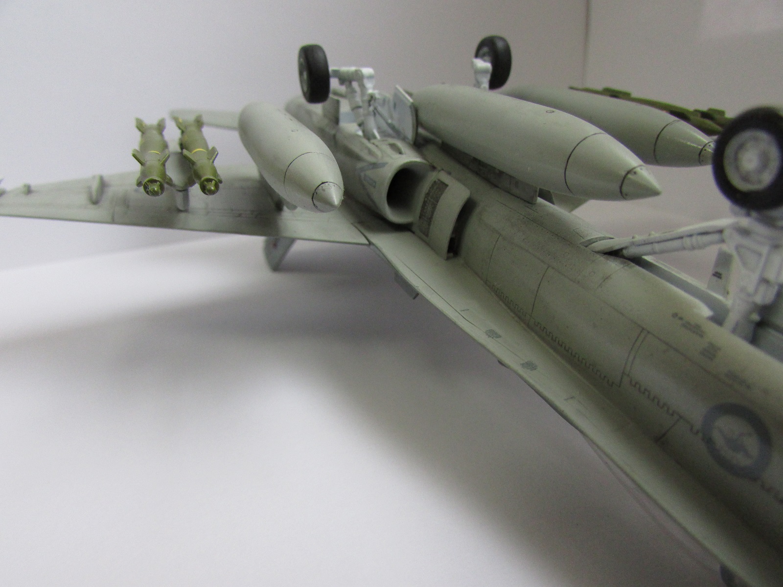 Тогда еще немного по тем "бомбочкам" которые висят на модели. Могу конечно ошибаться но для того чтоб их применить под фюзеляжем хорошо бы подвесить контейнер системы наведения их на цель, так сказать для реализма, если таковой имеется в наличии....