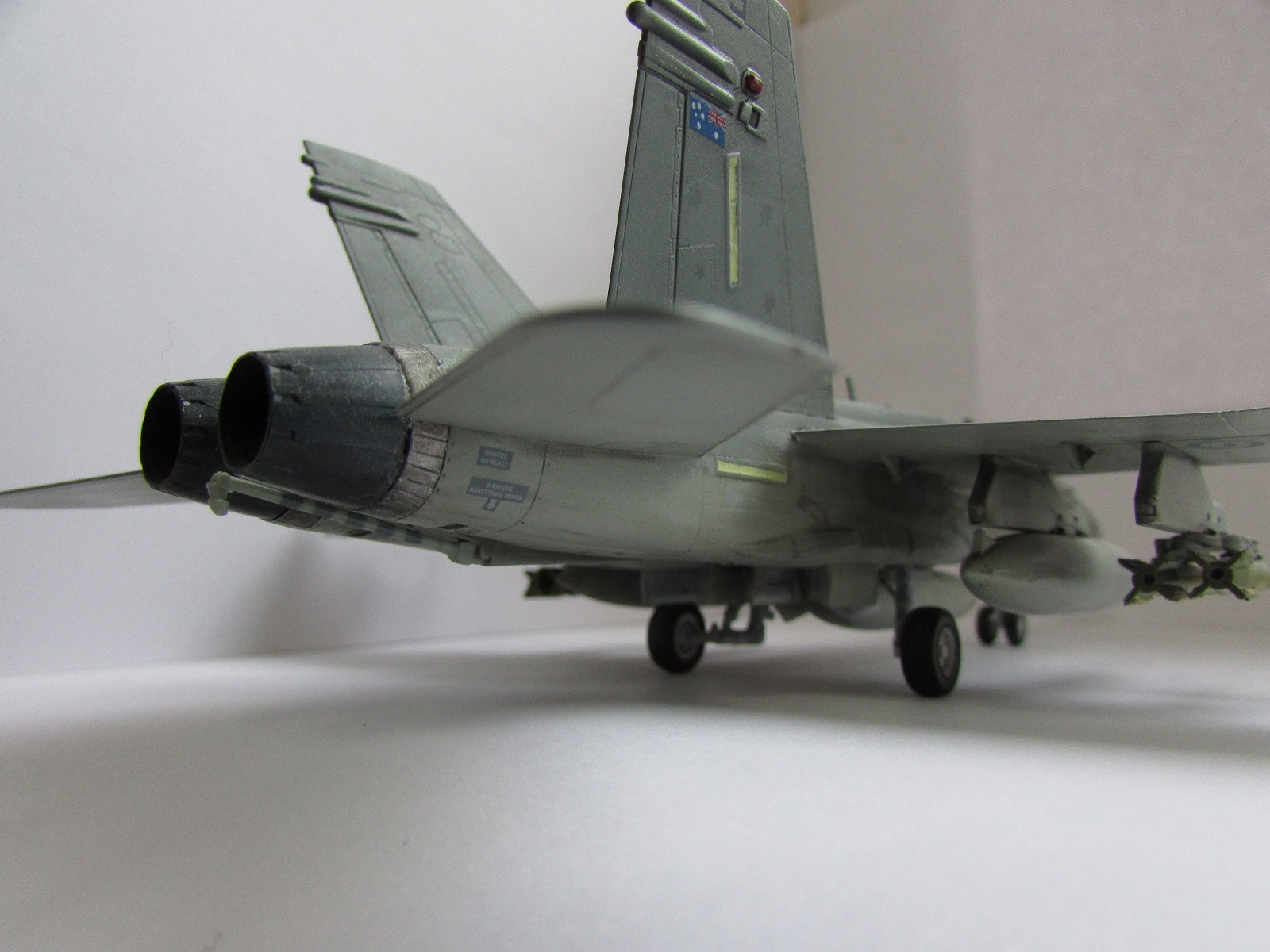 Название самолета правильнее было-бы на F/A-18A подправить, так как это не только F - истребитель, но и A - штурмовик, модификации А. В Австралии из "старых" Хорнетов только А и В имеются, С/D у них нет; из новых если не изменяет память состоят на вооружении и закупаются мод.F и EA-18G (но это уже др.машины).