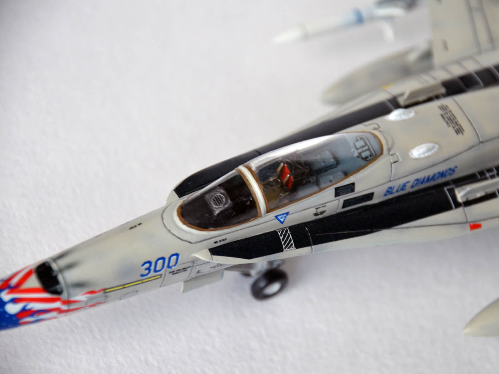 Модель была собрана и покрашена, но глаз не радовала. Просто стояла в витрине и ждала своего часа на выброс. Недавно была так, для кучи куплена интересная декаль Print Scale 72044 на McDonnell Douglas F/A-18 Hornet (Part I) 1/72 с яркой окраской истребителя командира авиакрыла с бортовым номером 300/NG, базирующегося на авианосце CVN-74 USS John C.Stennis.