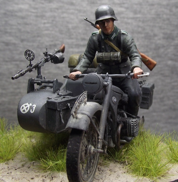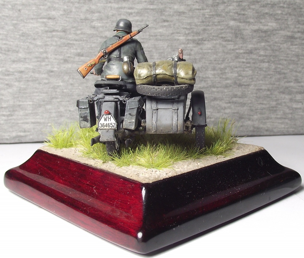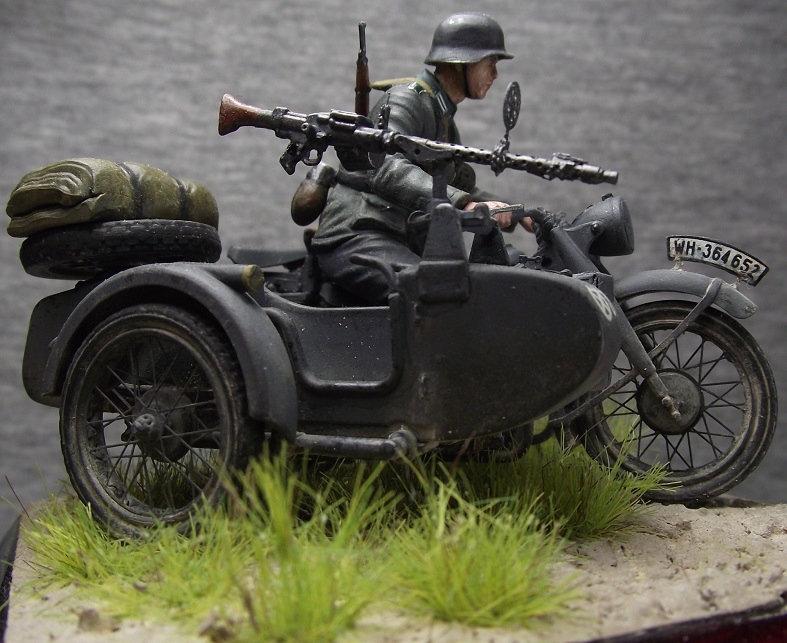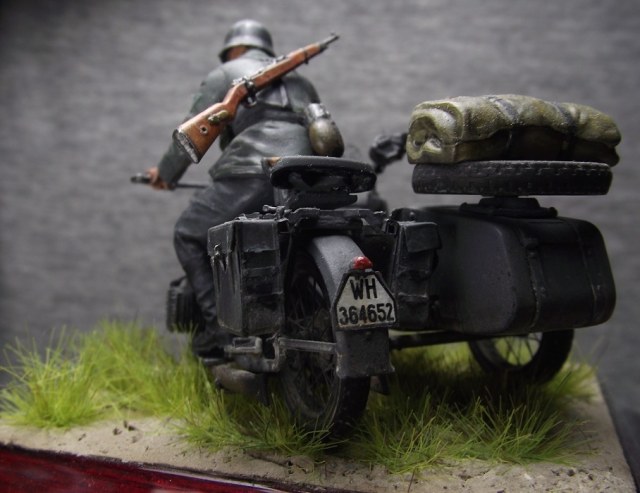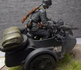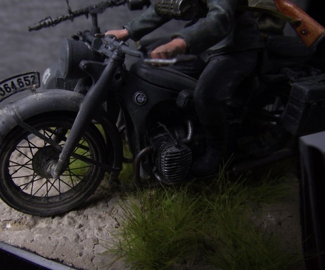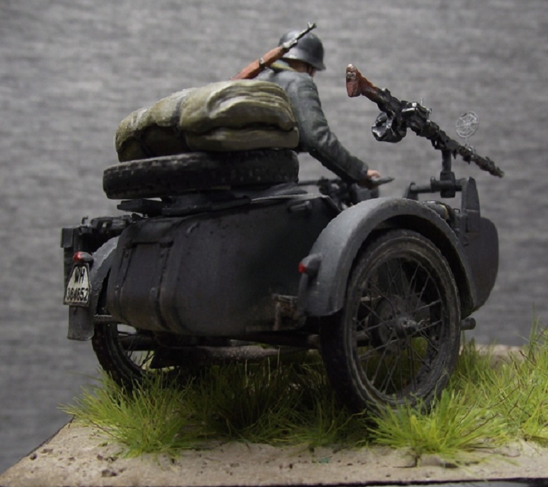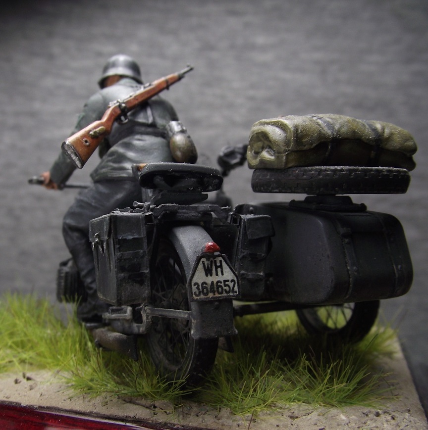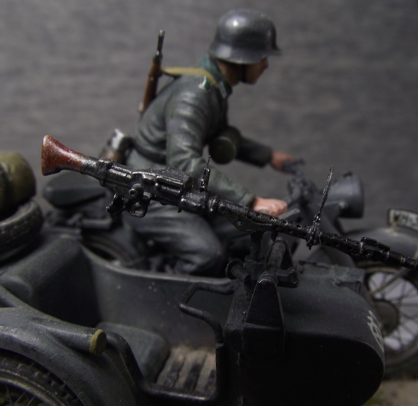 Колесо коляски кривое (фото 14), прицел MG зенитный, сумки не кожаные? Тросиков нет, а жаль- они реально зрелищности придают. И фару Эльф в таком исполнении сложно оценить. А так в целом понравилось.