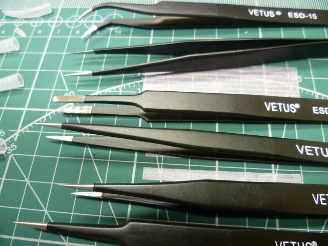 Вот выписал себе наборчик пинцетов из Китая. Решил поделиться с Вами своими впечатлениями. До этого у меня уже был один такой пинцет (15-й), поэтому в качестве сильно не сомневался, когда заказывал себе весь набор полностью. Ожидания оправдались, доволен. Острые, цепляют и держат хорошо, антистатические. Материал: нержавеющая сталь. Тип: esd10, esd11, esd12, esd13, esd14, ESD15.