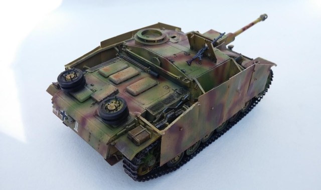 Матчасть не обсуждаю-НЕ ГОТОВ.Покраска выполнена хорошо(было бы лучше троссы с коушами в камо не красить).НО траки?Они нуждаются в покраске-более реалистичной(вид у них виниловый-некрашеный).В целом работу можно было считать удачной.С уважением.