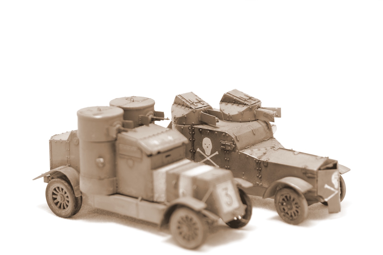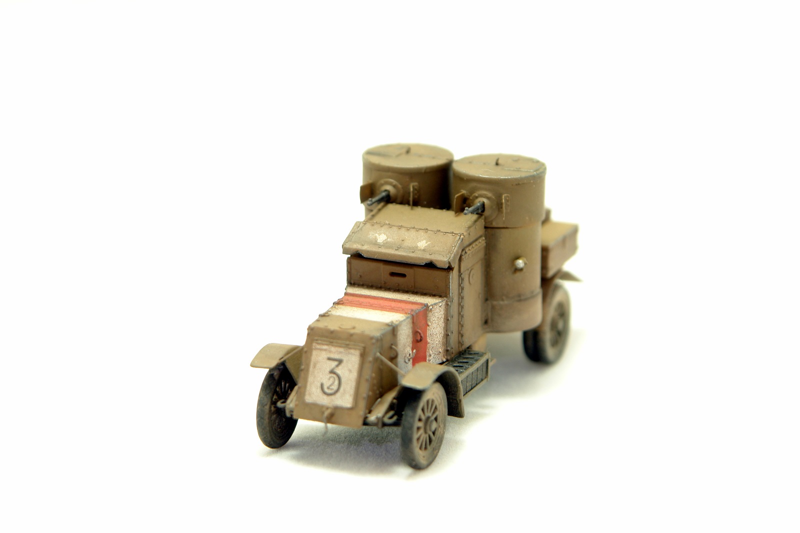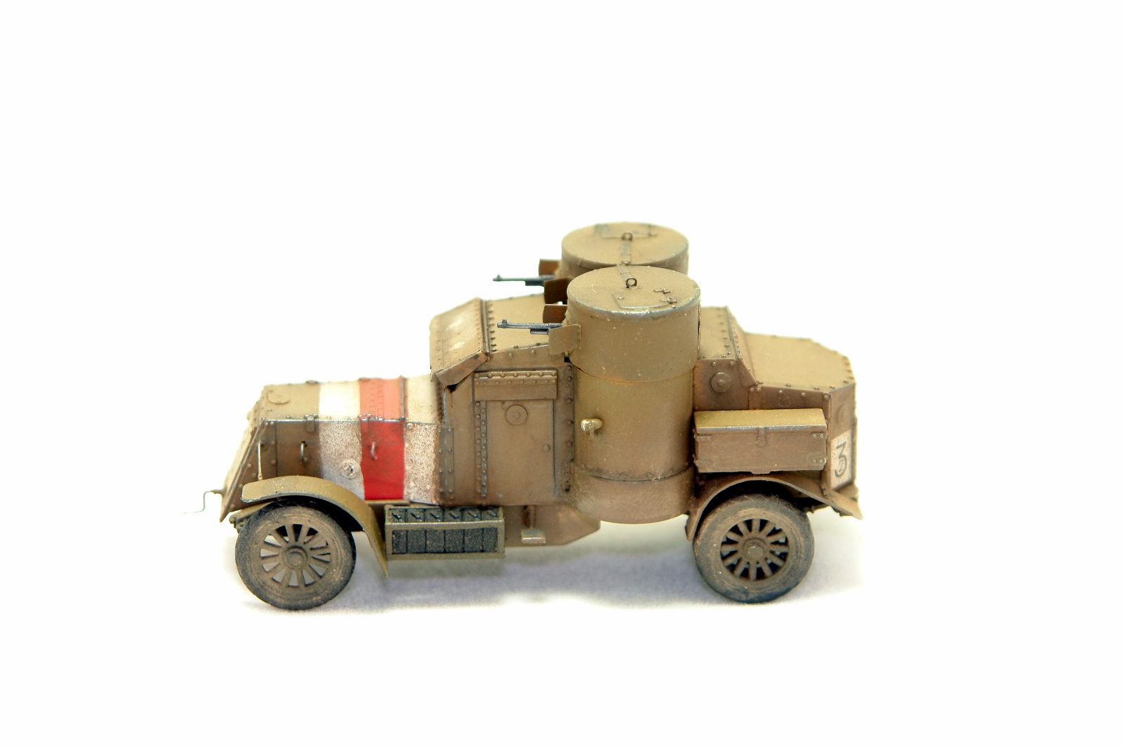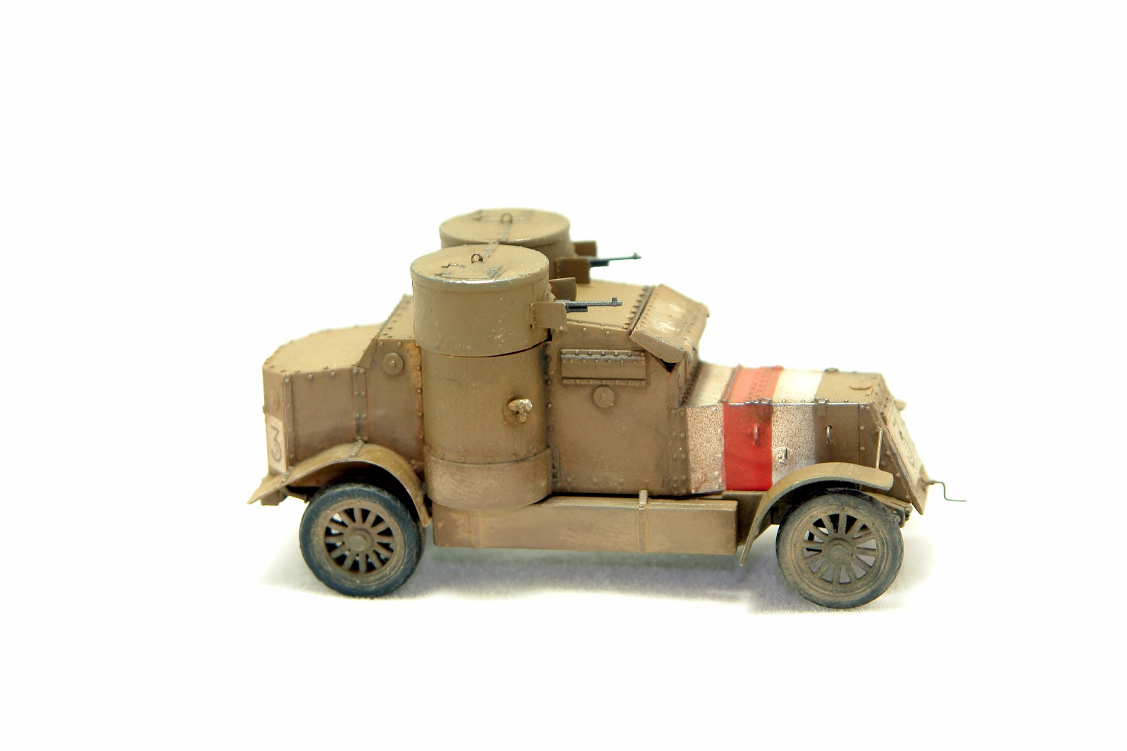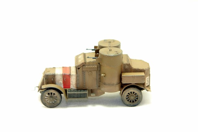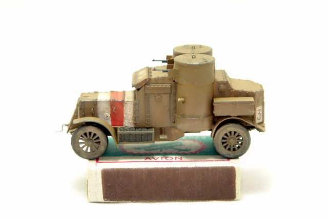 Представляю вашему вниманию модель легендарного броневика Остин. По количеству в Российской / Белой/ Красной и всех остальных армий на территории бывшей империи, эта машина была, безусловно первой. Модель Мастер Бокс вышла не очень давно. Это модификация 4 серии. Модель очень хорошего качества. На самом деле, сразу после покупки моделей 3 и 4 серий, я увидел, что есть наборы травления от NorthStar. Заказал и их. Но я заказал два, а надо было три так как, 4 серию можно собрать в двух вариантах с разным вооружением, что я и сделаю. Сейчас Я собрал вариант, который использовался Бритами на западном фронте и не поставлялся в Россию. Вооружение Гочкисы. Травление только бронировка пулеметов, все остальные дополнения стальная проволока. Крылья сточил. Ещё сделал открытым передний лист бронировки перед водителем. Для этого использовал листовой пластик по бокам и сточил сам лист. Так же, швы позади башен закрыл жестяными полосками. Заклепки сделал риветором наоборот. Прокатал сзади и они выступают наружу. Думаю, понятно объяснил. Если что, готов ещё ответить на вопросы. Покраска набором красок АК для британских танков ПМВ. Знаки опознавания накрасил, так как декаль идет только по бокам капота. У меня есть сомнения, что сверху ничего не было, так как на танках знаки сверху были очень распространены. На фотографиях этот момент не очень ясно выглядит. Так что, возможно я не прав, но машина, так выглядит явно выигрышней. Мне сборка модели доставила удовольствие. На предпоследней фотке вместе с Амстронгом Уитвортом. Тоже двухбашенный и служил в РИ.