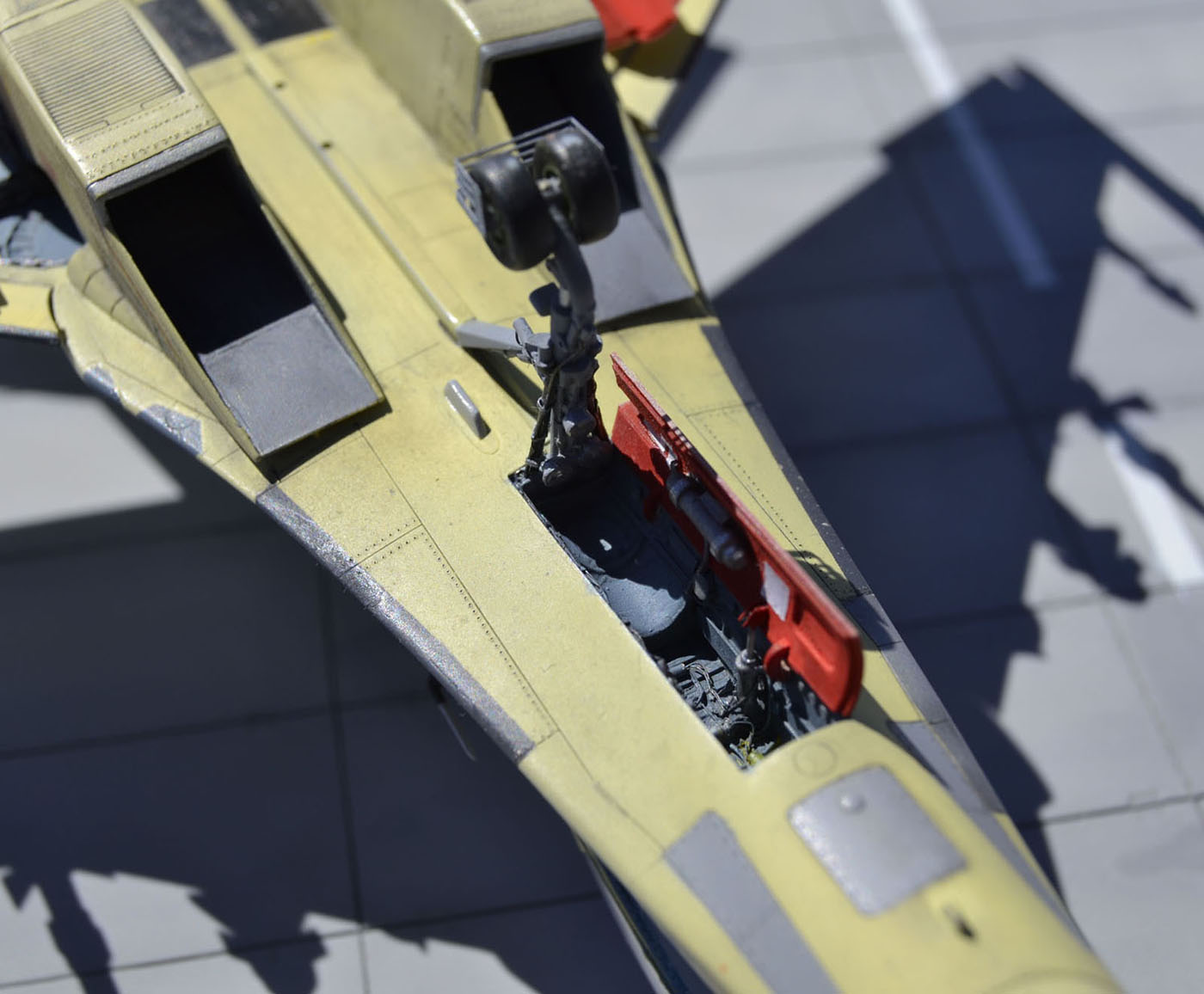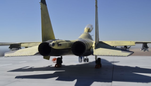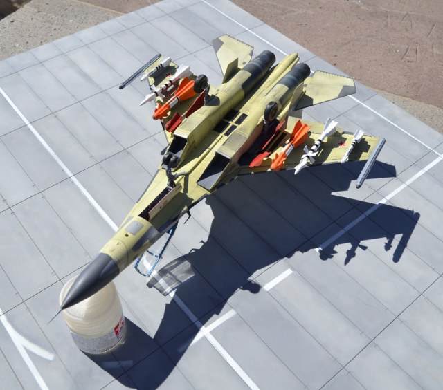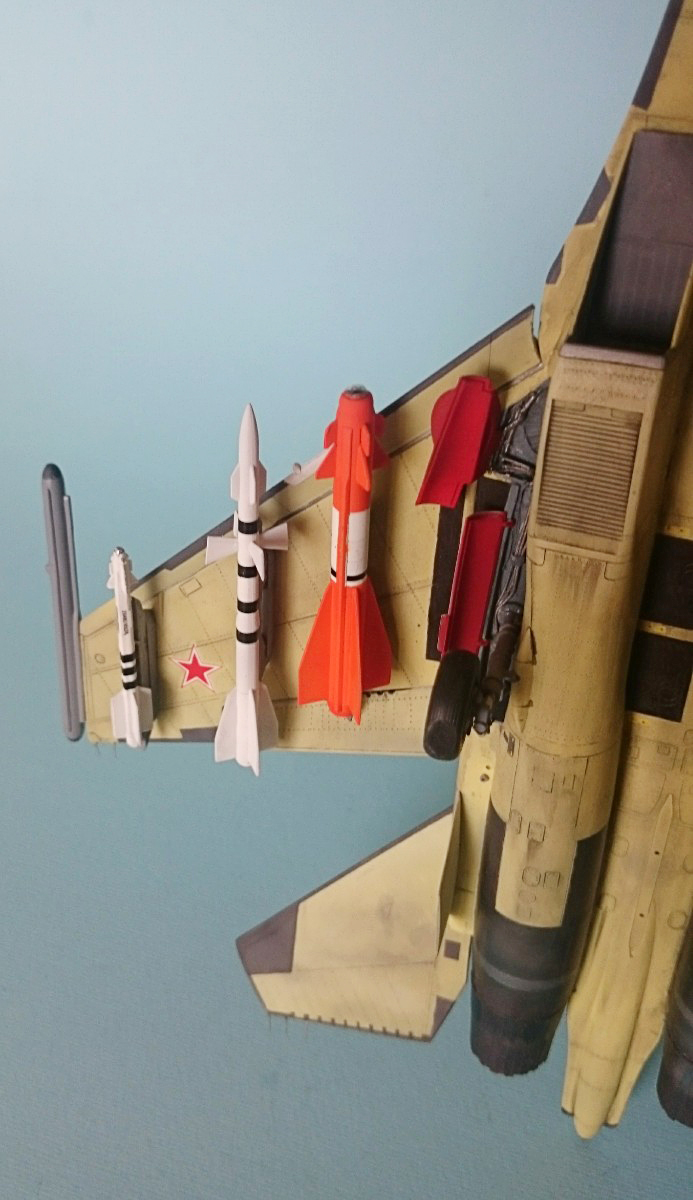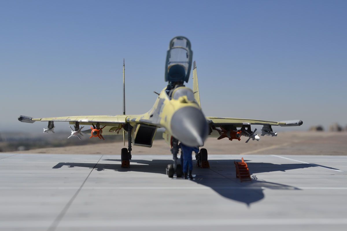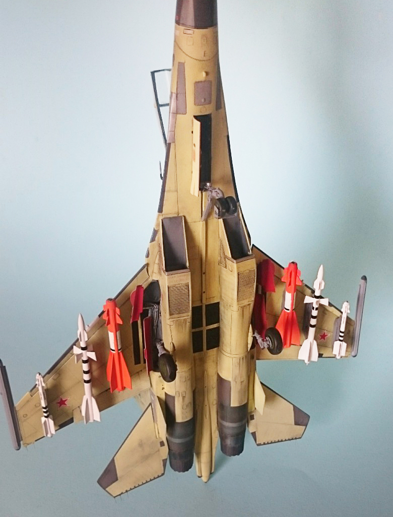 Хорошая работа, но не лишенная недостатков. Помимо чрезмерно запачканных килей и непонятно почему закрашенного КОЛСа могу добавить еще один момент, который мне сразу бросился в глаза. А именно, вооружение под крылом подвешено так, что на виде сбоку имеет различный угол установки. Такого быть точно не должно, все вооружение должно висеть под одним углом - таким, чтобы в полете создавать наименьшее сопротивление.