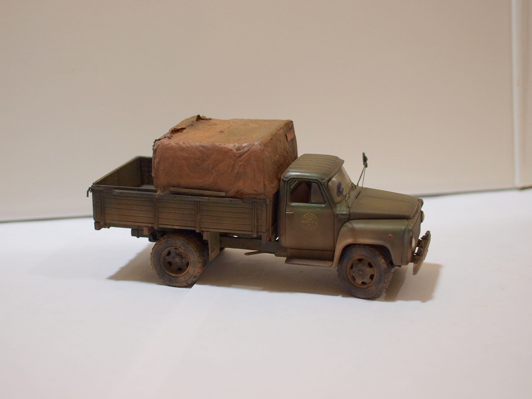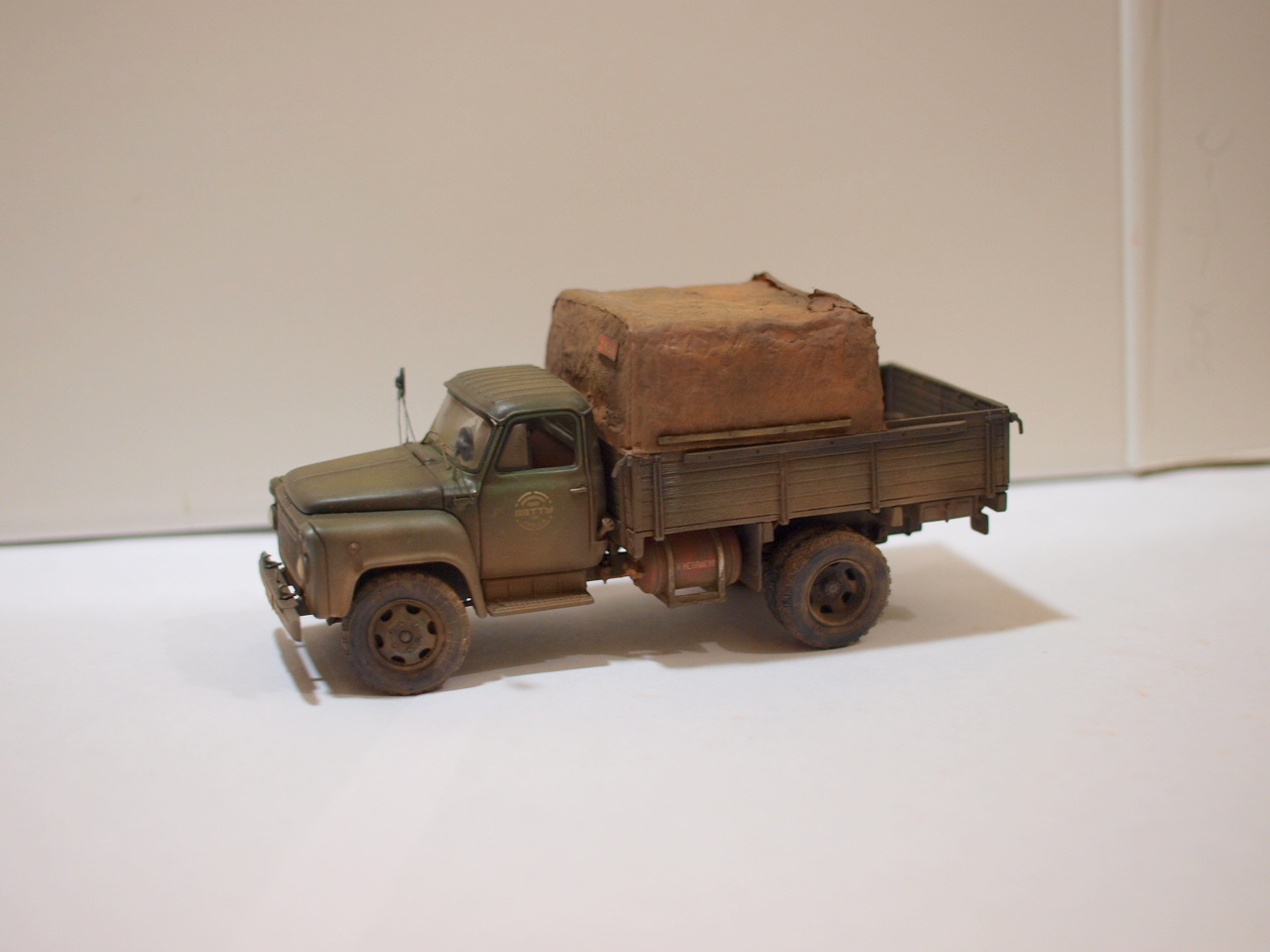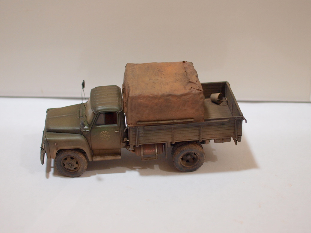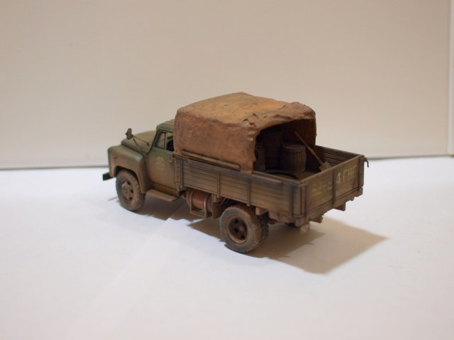Сделал тент,груз в кузов,травлённые детали (зеркала,катафоты..) и следы эксплуатации.Вообщем-то ничего особенного,но так выглядит значительно более "настоящим"!