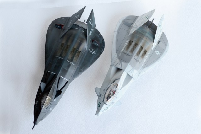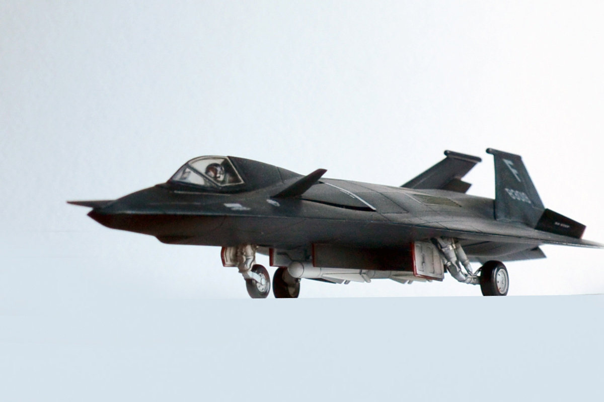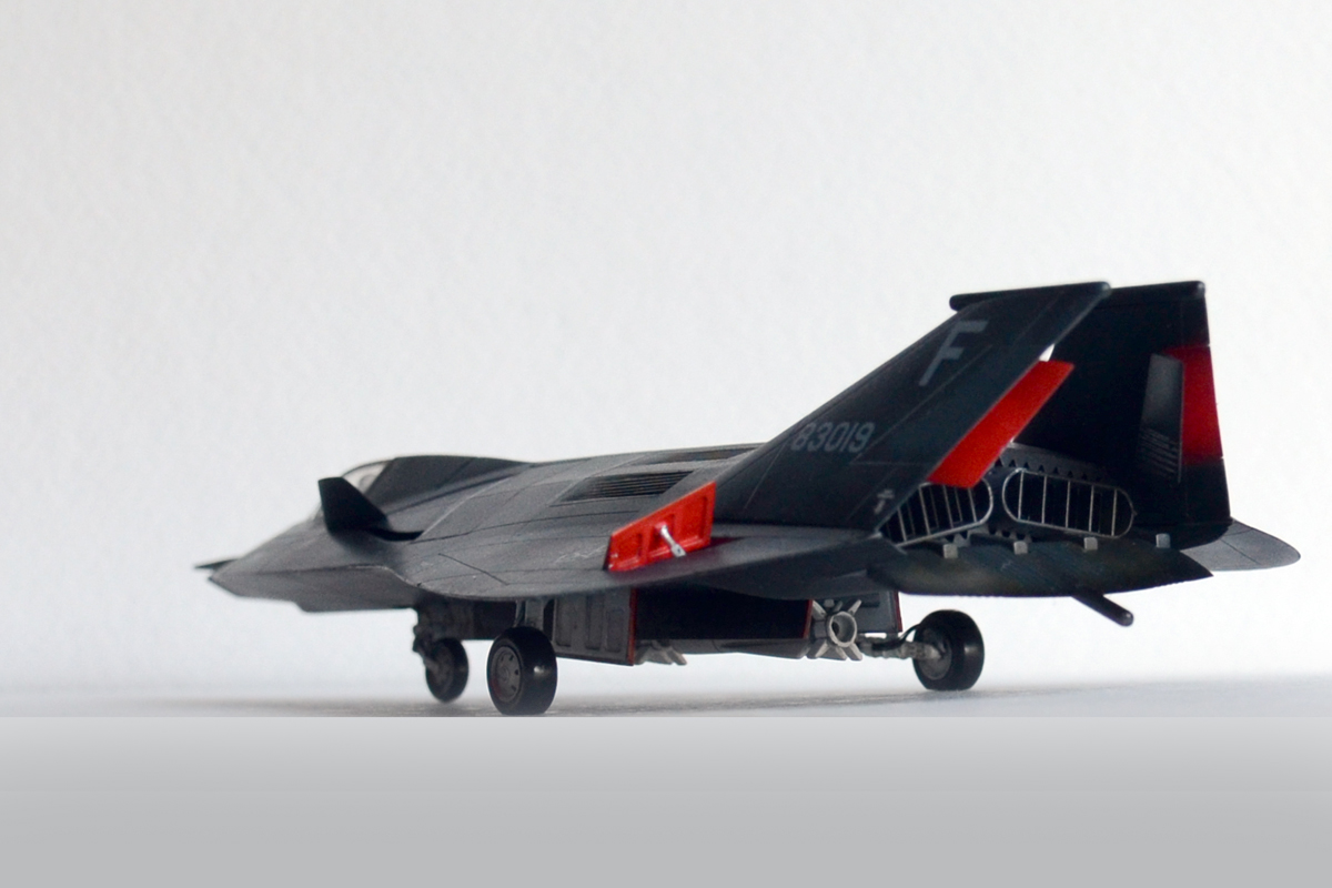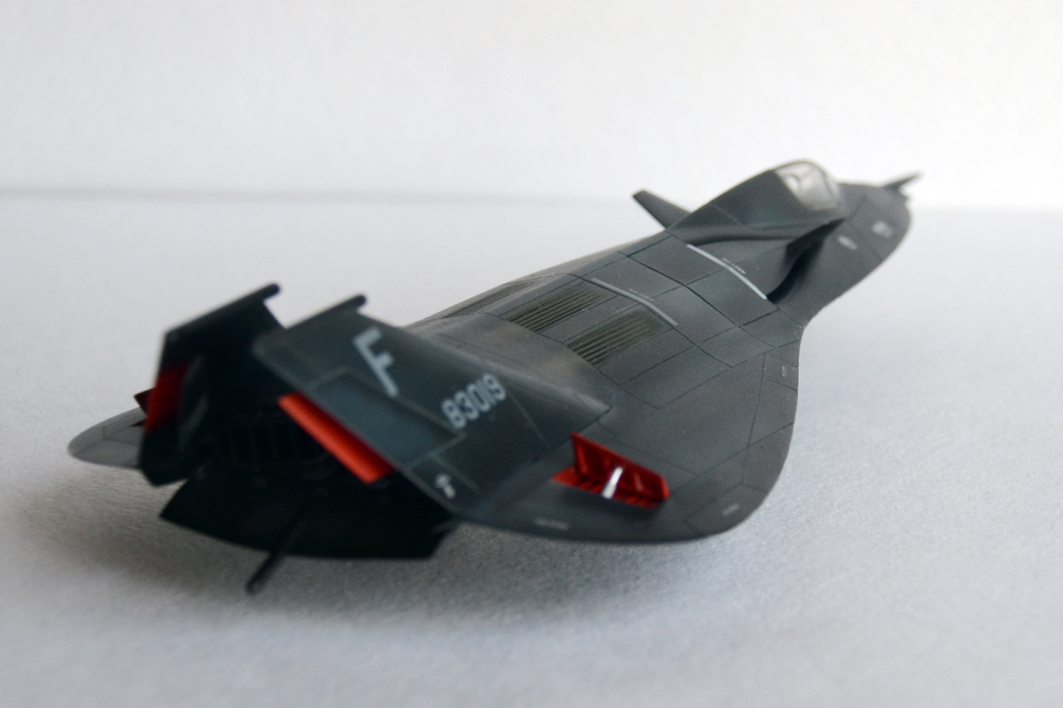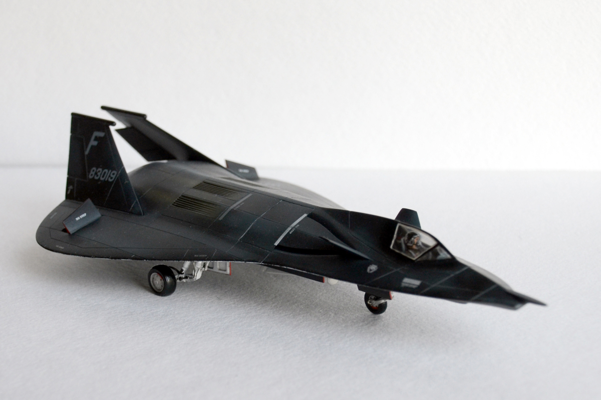 И вот однажды, в 1986 г, инженер фирмы Testors Джон Эндрюс, создаёт образ истребителя стелс, который и воплотил в модели F-19. Она произвела очень сильный эффект , так как выглядела очень убедительно, как будто была слеплена с реального прототипа. Обводы планера были похожи на «SR-71», а кили завалены внутрь, как у «HaveBlue». Этот образ и станет впоследствии каноническим при разговорах о мифическом самолёте-невидимке.