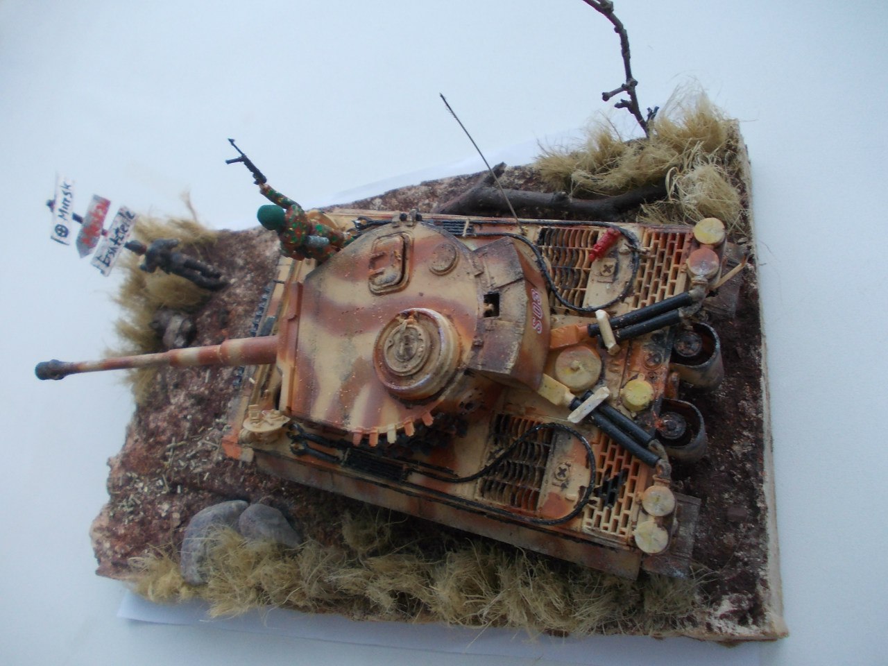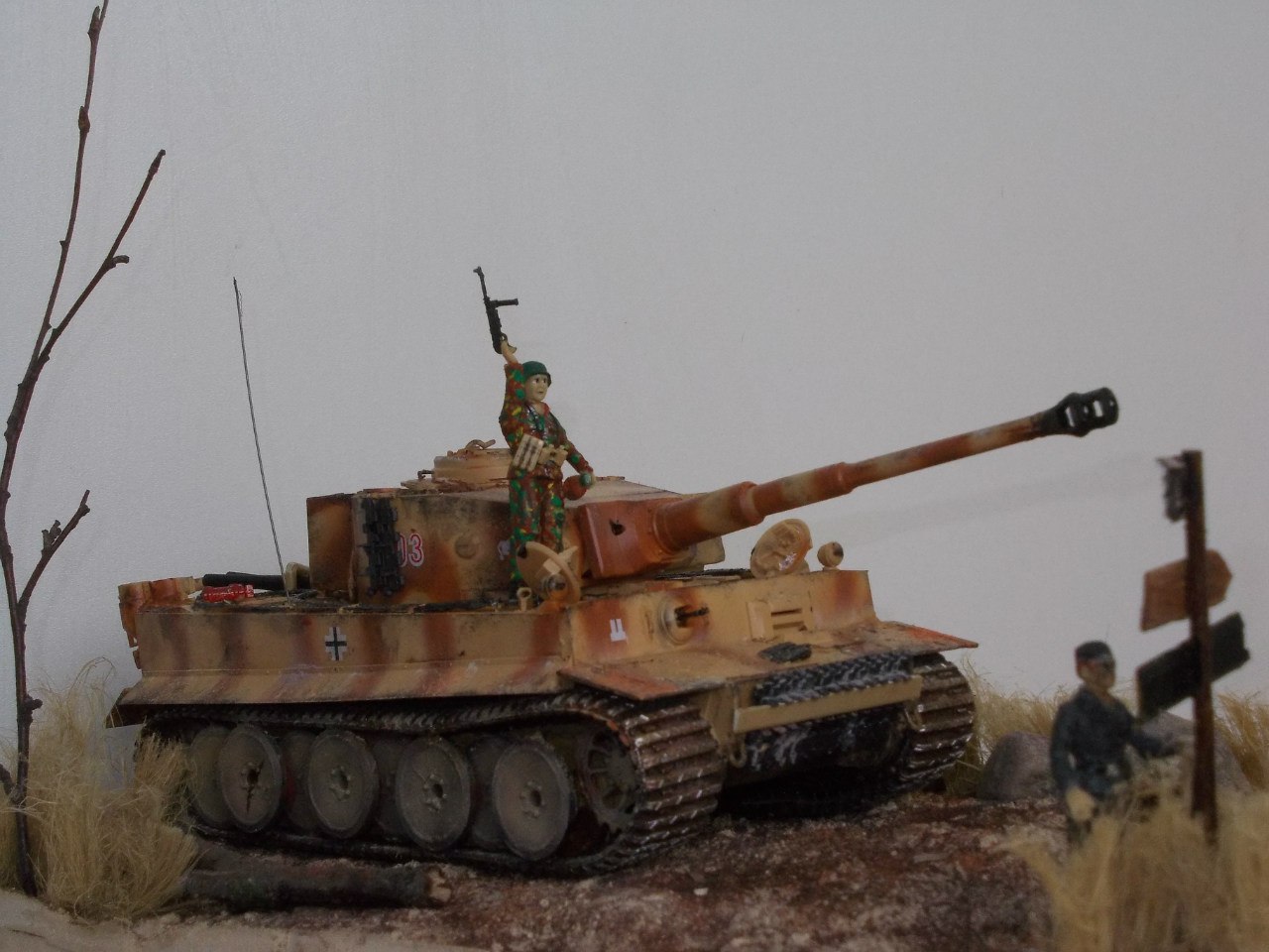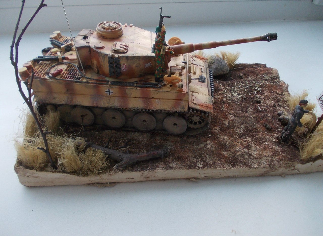 Доброго времени суток.Как обывателю ,естественно приглянулся "Тигр" в магазине.Собирал в три захода,после очередной паузы красил,делал диораму.Работа первая и грубо выполненная,греха не таю.Все собрано из коробки,ничего не добавлял,ибо негде взять.Для окраски использовал нитру для базы,художественный акрил,худ.масло и пастель.Спасибо за внимание.