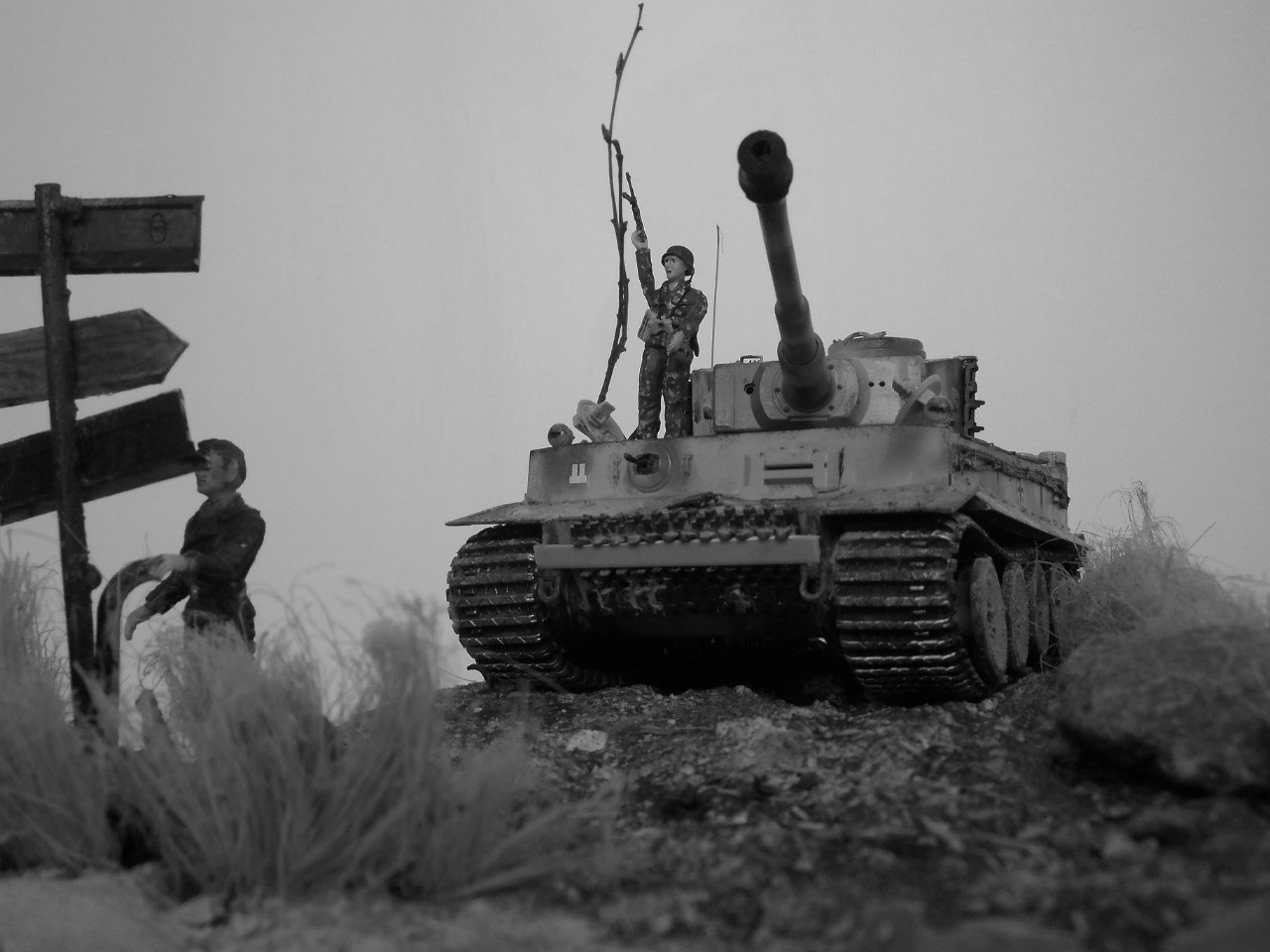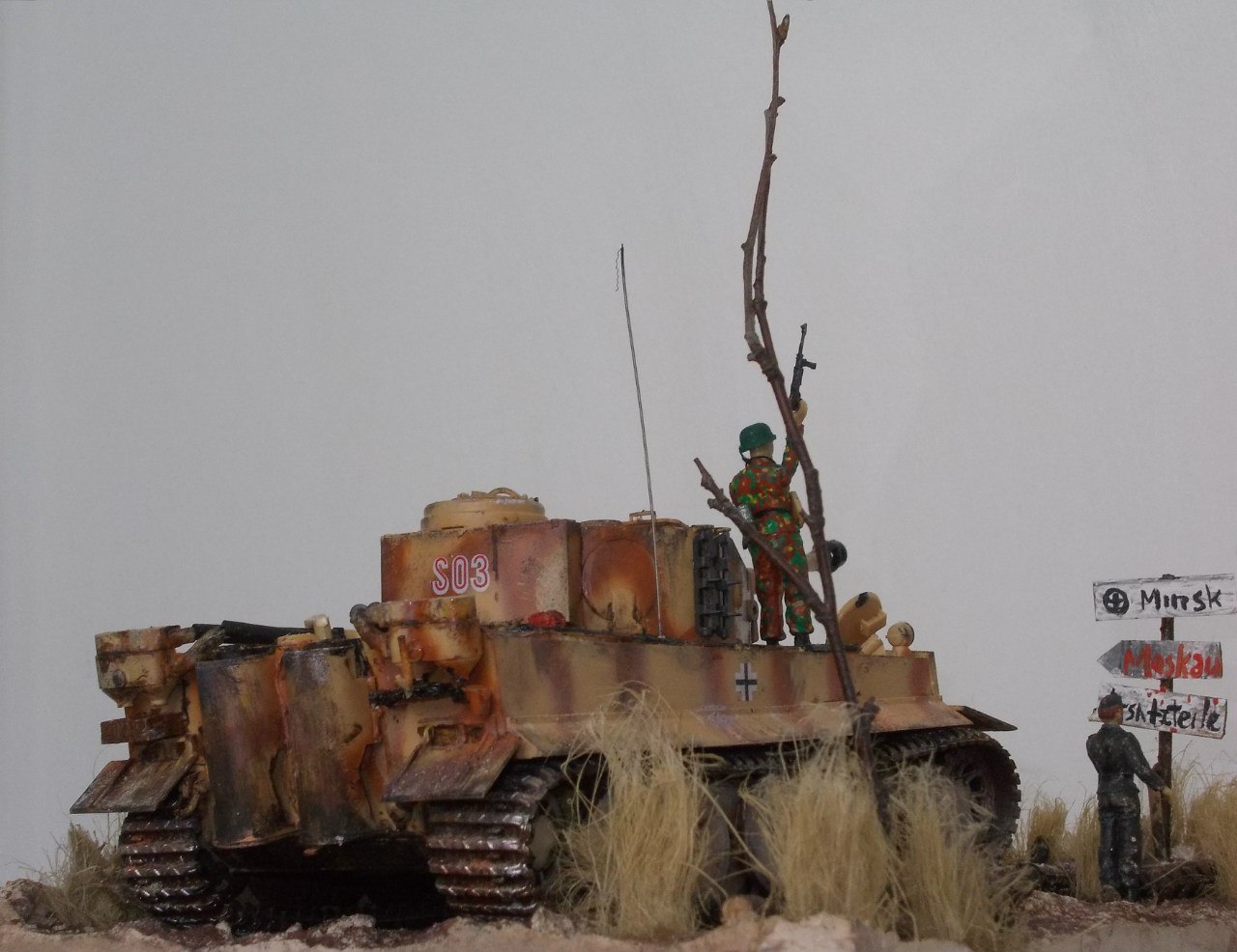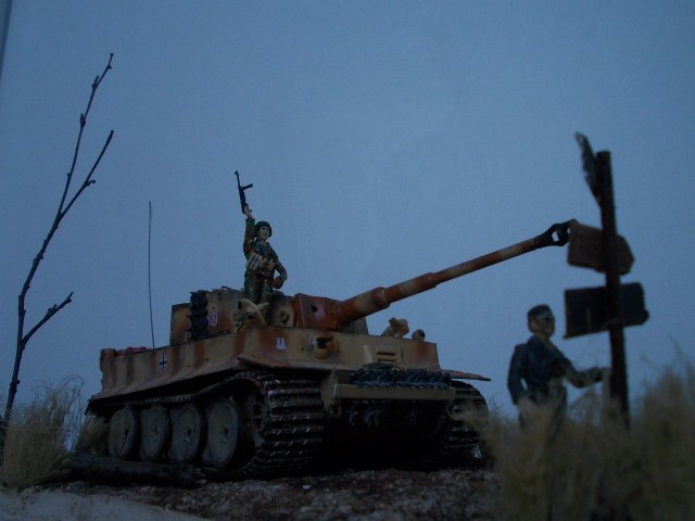 Доброго времени суток.Как обывателю ,естественно приглянулся "Тигр" в магазине.Собирал в три захода,после очередной паузы красил,делал диораму.Работа первая и грубо выполненная,греха не таю.Все собрано из коробки,ничего не добавлял,ибо негде взять.Для окраски использовал нитру для базы,художественный акрил,худ.масло и пастель.Спасибо за внимание.