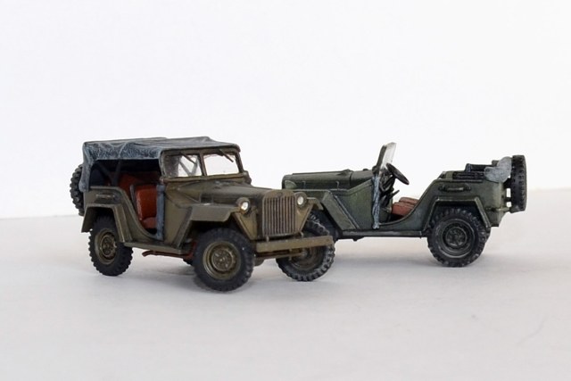 Модель неплохая в сборке. Есть фототравление. Куплено два набора для сборки с поднятым тентом и убранным. Окраска стандартно эмали Humbrol, сухая кисть.