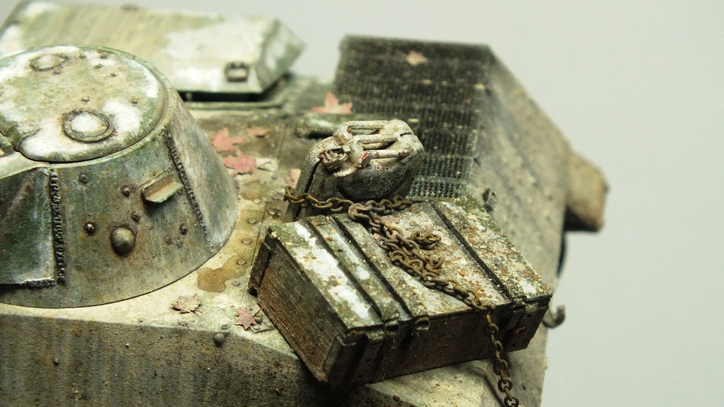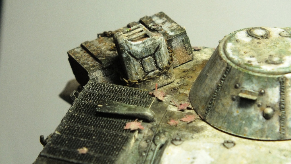 По поводу траков на надгусеничных полках и канистры с ящиком, почему бы и нет? По мне так это оживляет модель. Насчет ящика и канистры, идея размещения весьма глупая согласен.