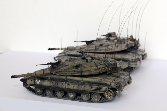 Все же не соглашусь с цветами танчиков, из четырех только у этой четверки цвет похож на синайский серый. И хотя, уже поздно, но разберитесь с маркировкой танков ЦАХАЛ. С маркировкой у вас не все гладко. Конкретно по этому танку: