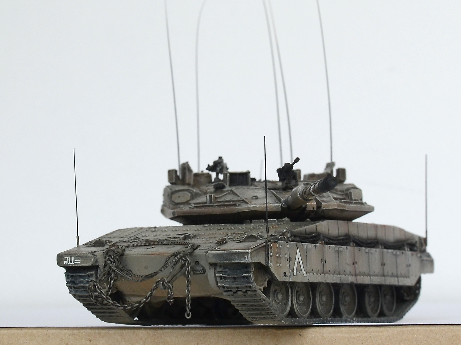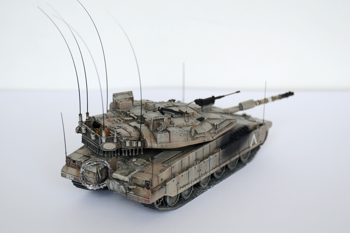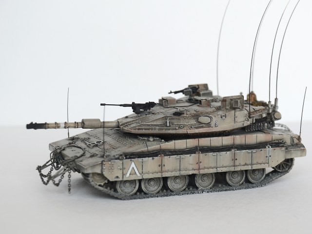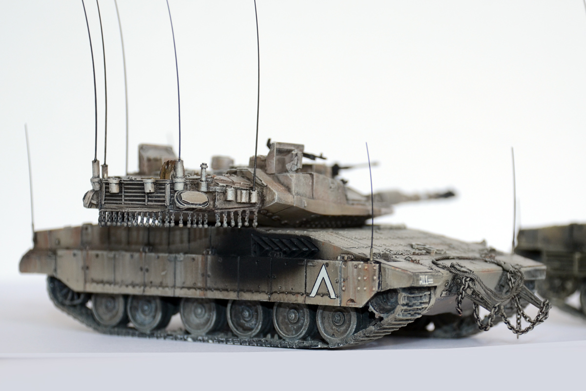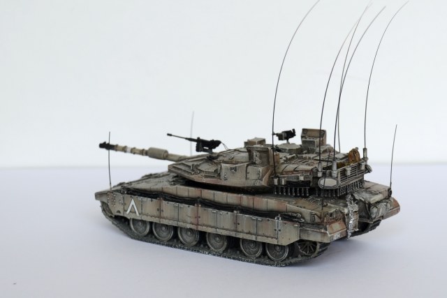 А вот "антенки" по углам корпуса - это показатели габаритов для обучения молодых водителей, как было у немцев на всей технике, так было у наз на Кразах (в детстве я никак не мог понять зачем у грузовиков на передних крыльях дергаются антенки с белыми шариками) А так как в ЦАХАЛ служит вся молодёжь, идёт постоянная ротация новичков, и в то же время частенько идут обстрелы с других территорий, то и обучение частенько происходит в боевых условиях. И вот чтобы не угробить сразу дорогущий танк и не застрять на узкой улочке, понавешали визуальных ограничителей на крылья.