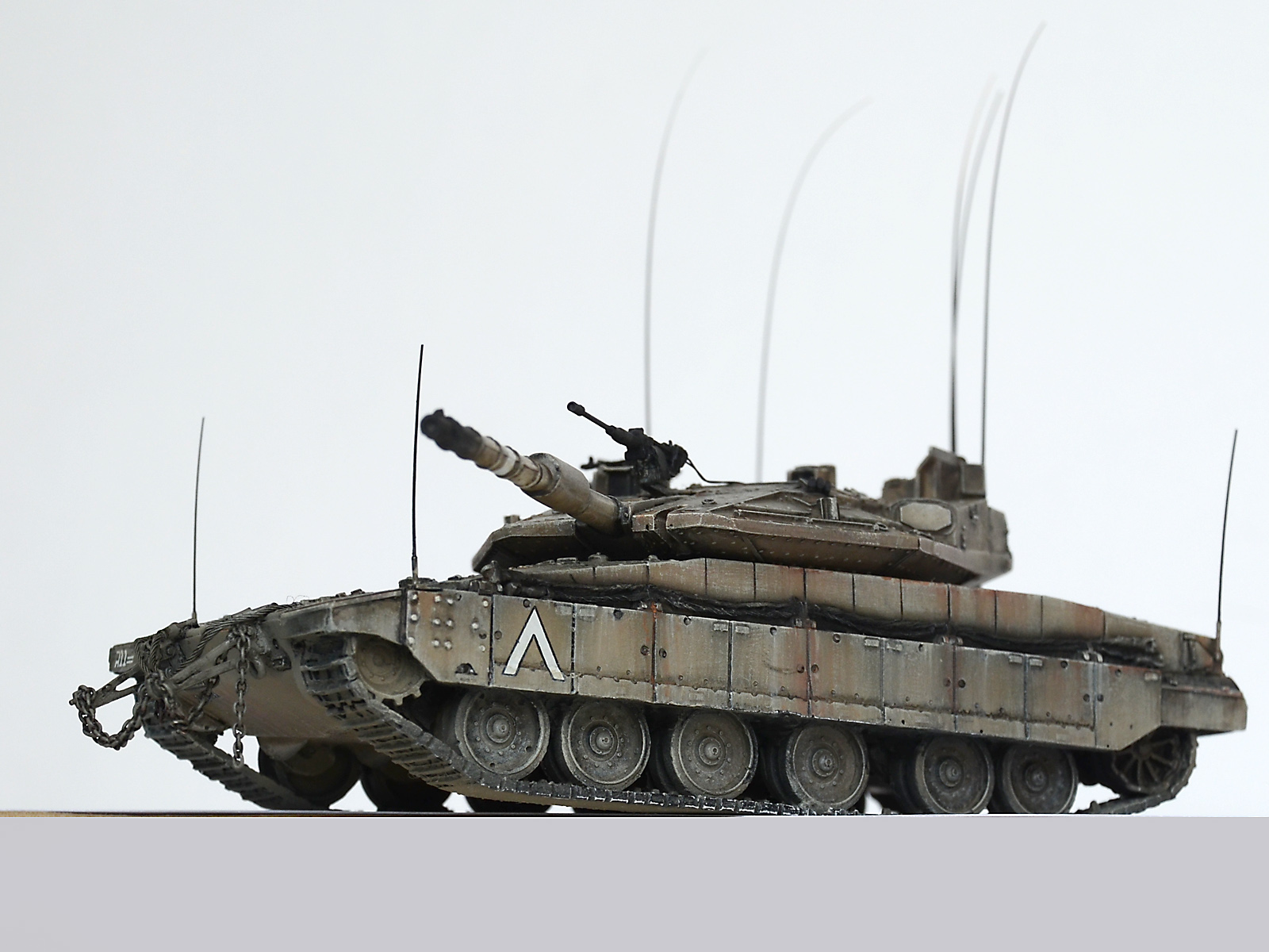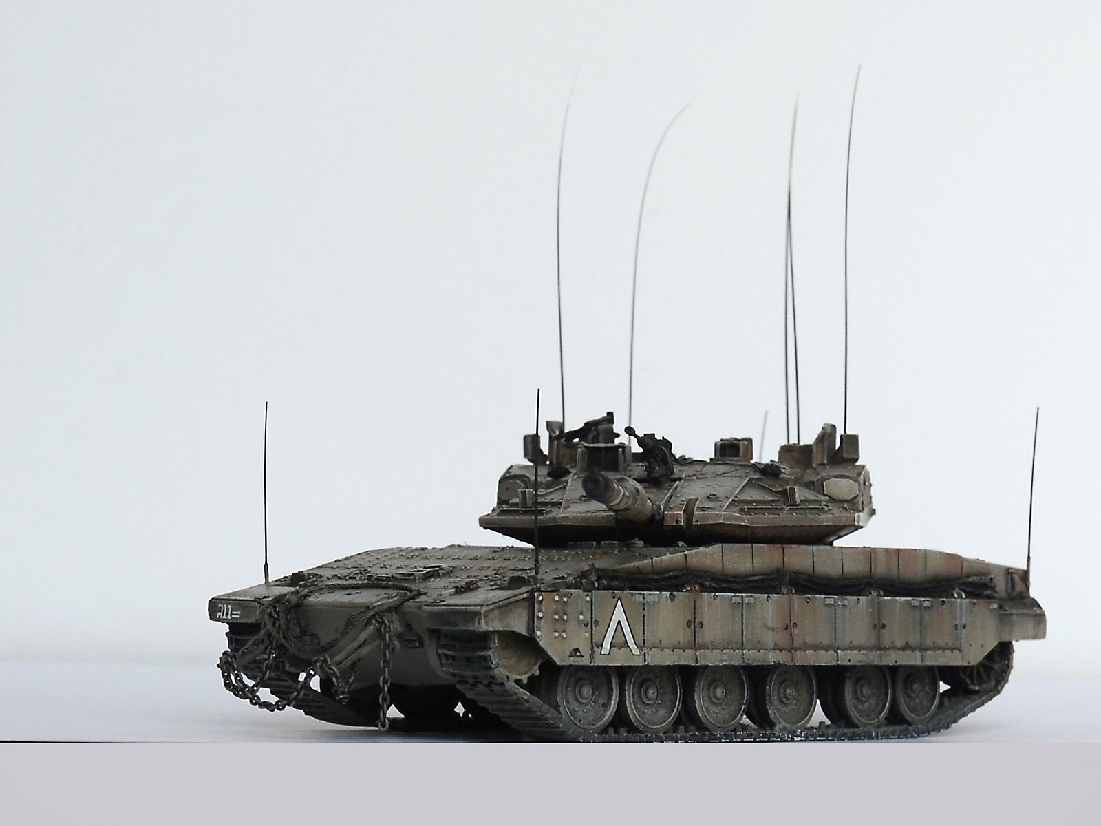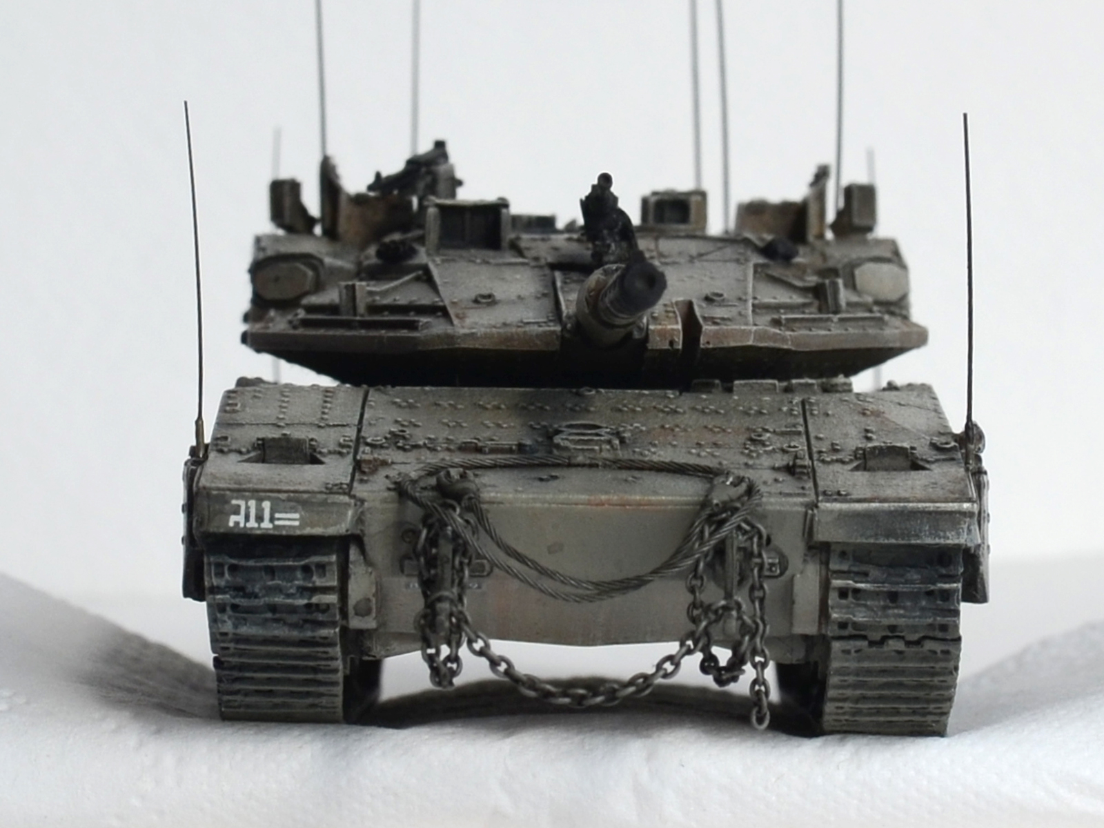 А вот "антенки" по углам корпуса - это показатели габаритов для обучения молодых водителей, как было у немцев на всей технике, так было у наз на Кразах (в детстве я никак не мог понять зачем у грузовиков на передних крыльях дергаются антенки с белыми шариками) А так как в ЦАХАЛ служит вся молодёжь, идёт постоянная ротация новичков, и в то же время частенько идут обстрелы с других территорий, то и обучение частенько происходит в боевых условиях. И вот чтобы не угробить сразу дорогущий танк и не застрять на узкой улочке, понавешали визуальных ограничителей на крылья.
