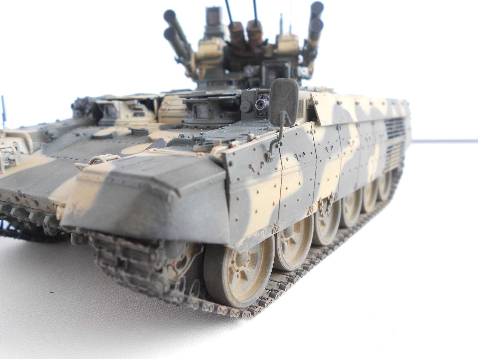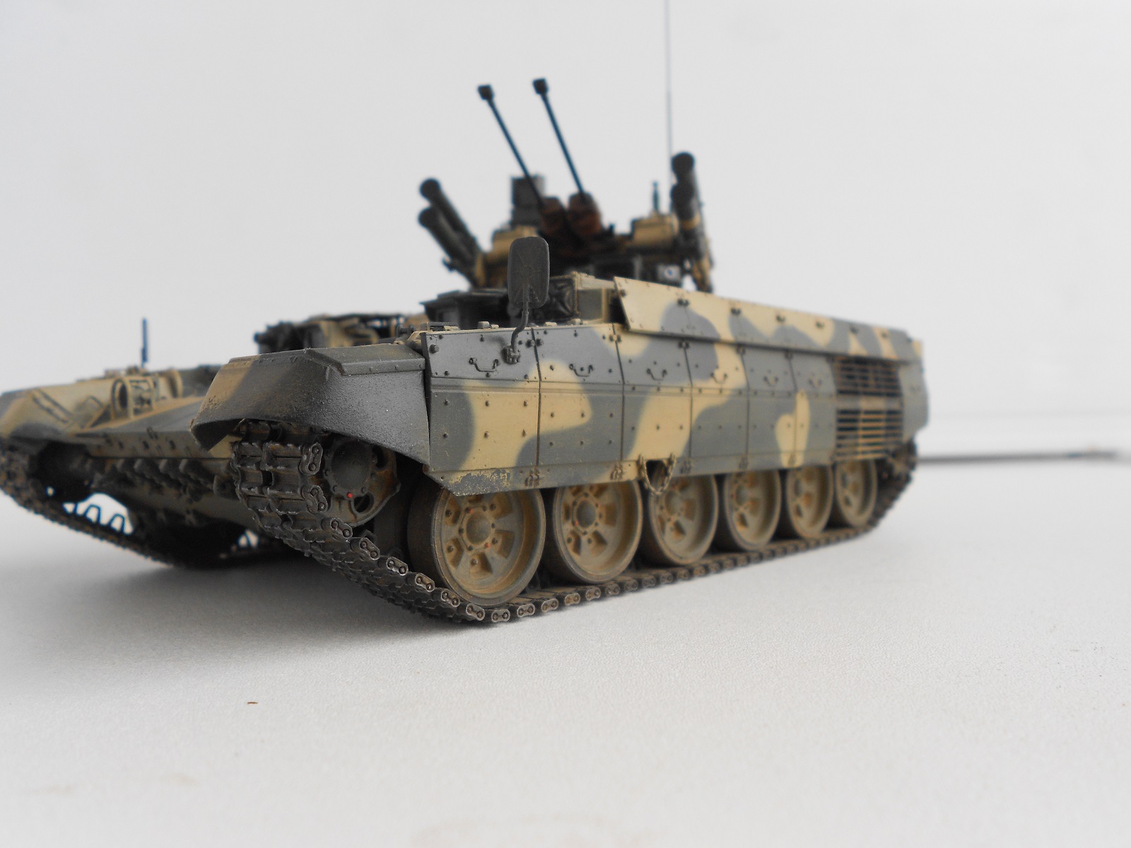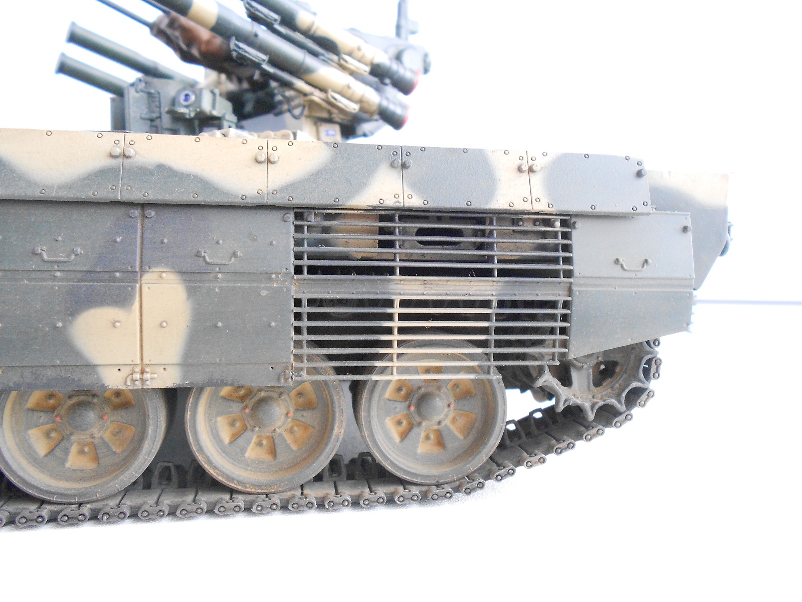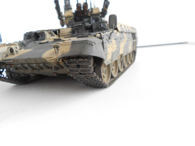 Гусянка наборная, рабочая и очень четкая, постоянно норовит выскочить из положенных ей мест. Если техника делалась как в подарок то вполне не плохо, но по мне так обычная ни чем не примечательная модель. Из плюсов отмечу траки - удачно получились.