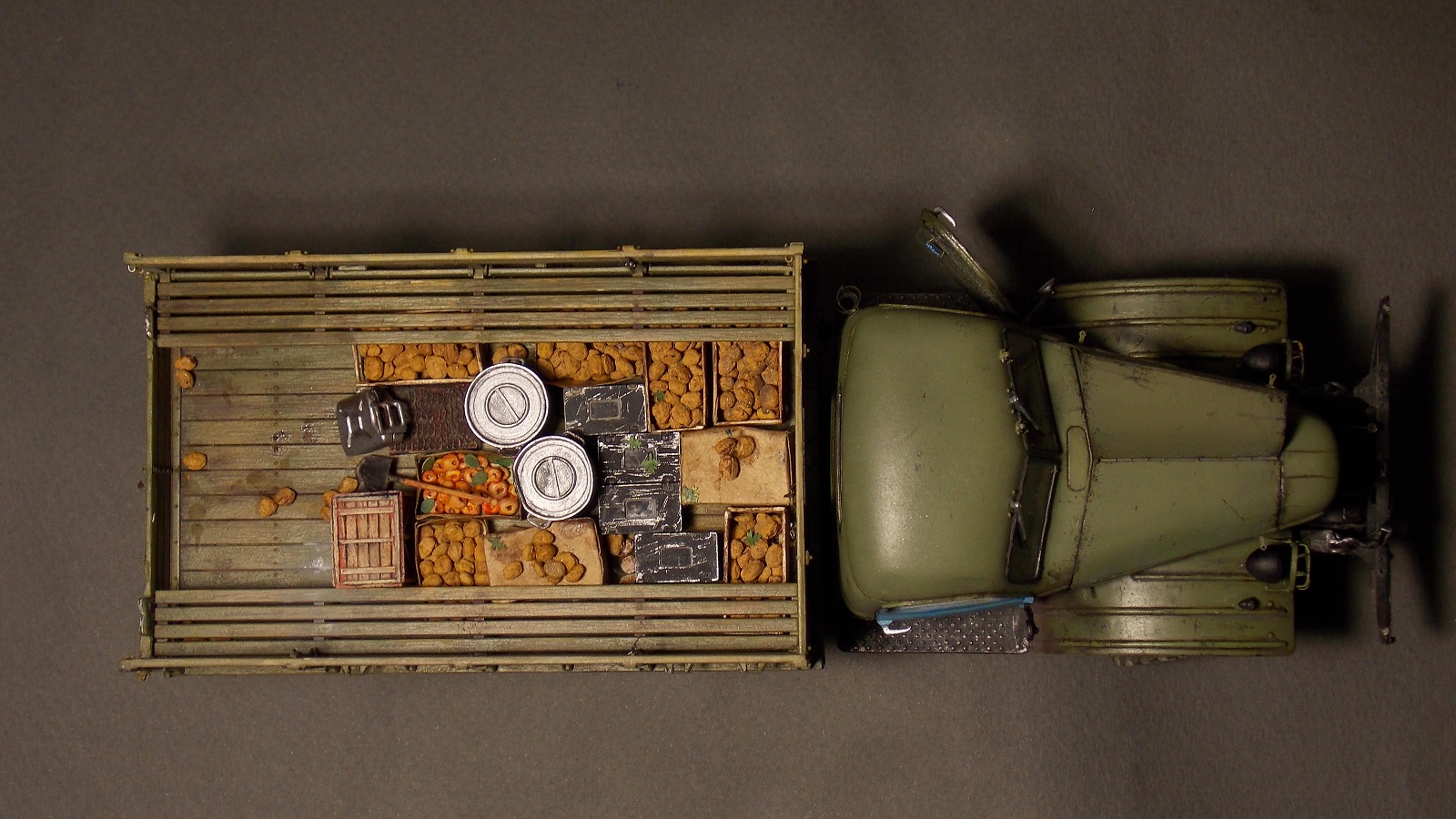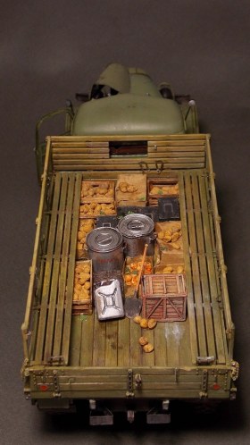 Скарб в кузове представлен картофелем фирмы "Juweela" (за него отдельное спасибо Михаилу Уколову), коробки от кондор, бидонами от "plus model" и деревянными самодельными ящиками.