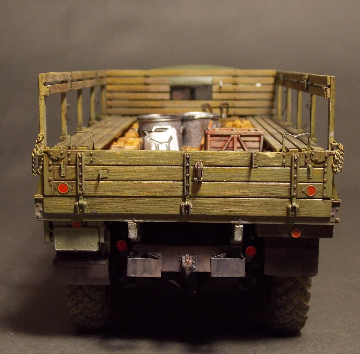 Немного смутили зеленоватые колеса и может быть стоило цепи на заднем борту чуток "зачернить", показалось что тоже зеленоватым отдают. Но это так, придирки, повторюсь - результат супер!