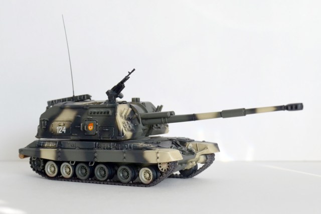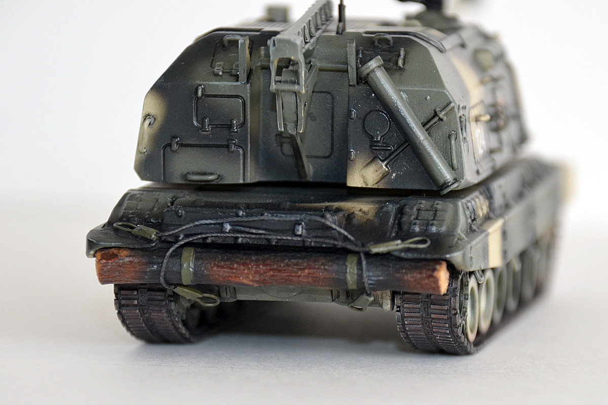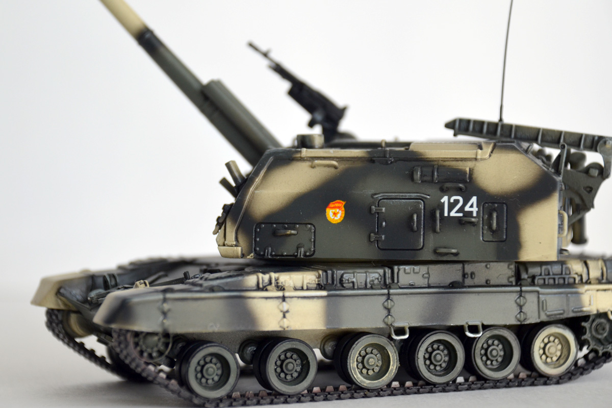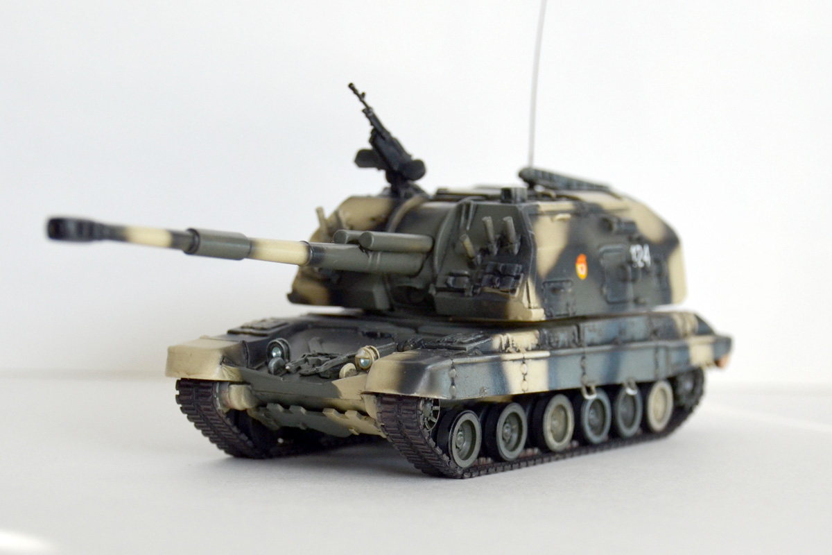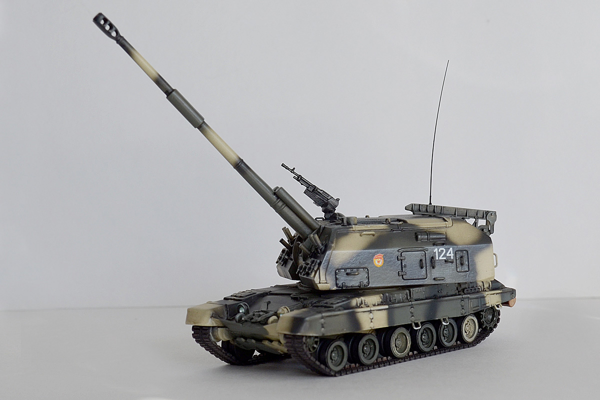 Что забавно, ГлавМакетСтрой в качестве базы для своей модели использовал как раз журналку. Смыл с неё толстый слой краски, добавил мелкие детали и размножил в смоле. Сравните с журнальной Мстой, увидите точно такую же толстенную расшивку, рассчитанную на окраску методом окунания.