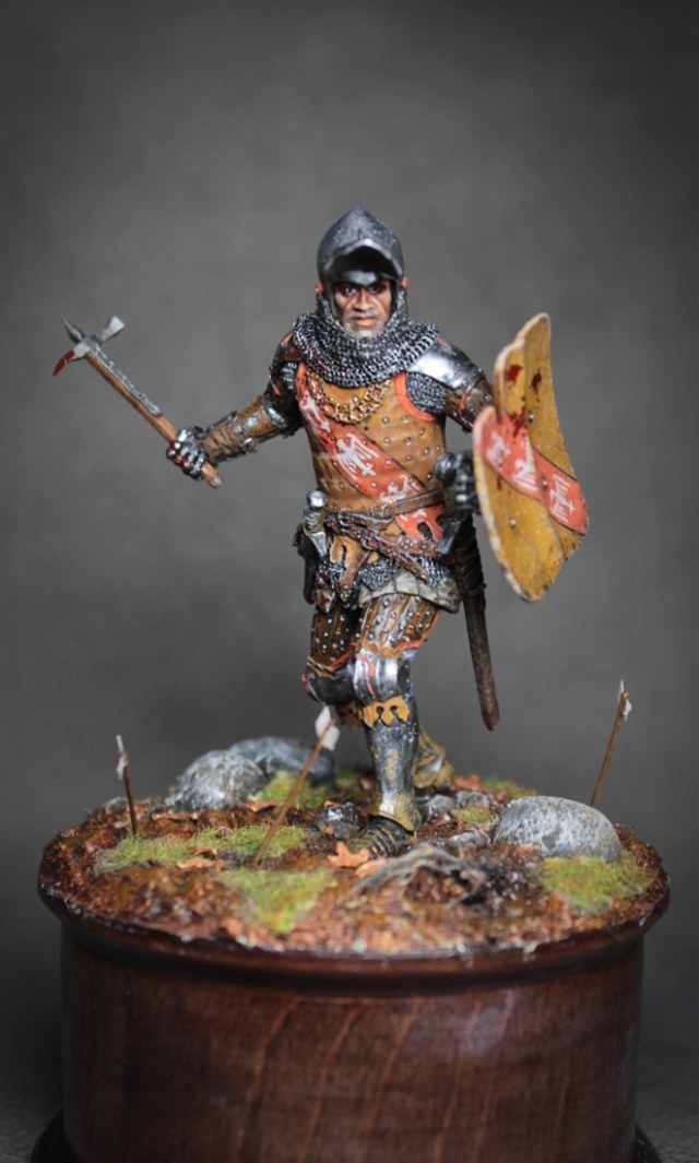 Спасибо за столь добрые и положительные оценки, на другом форуме меня разнесли в пух и прах с этой фигуркой :-) По поводу забрала-фигурку можно сделать в двух вариантах с открытым и закрытым забралом, и конечно было бы логичнее закрыть его-но тогда получается лицо зря расписывал :-)