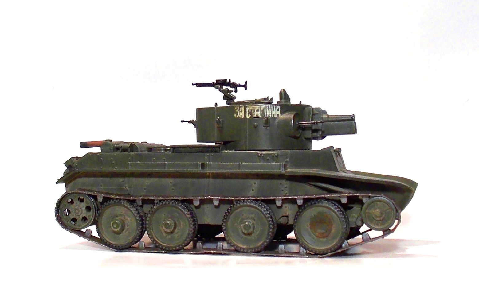 Если не смотреть на "косячки" с матчастью от ВЭ, то очень достойно выглядит. Окраска, в принципе, то, что надо. Цвет 4БО пошел, в основном, вроде бы с 1939 г., до этого был 3БАУ, он темнее, что и видно по модели. Практически все БТ-7А выпускались до 1938 и в 38 г., так что цвет в тему... Вряд ли их перекрашивали в 4БО потом в войсках...