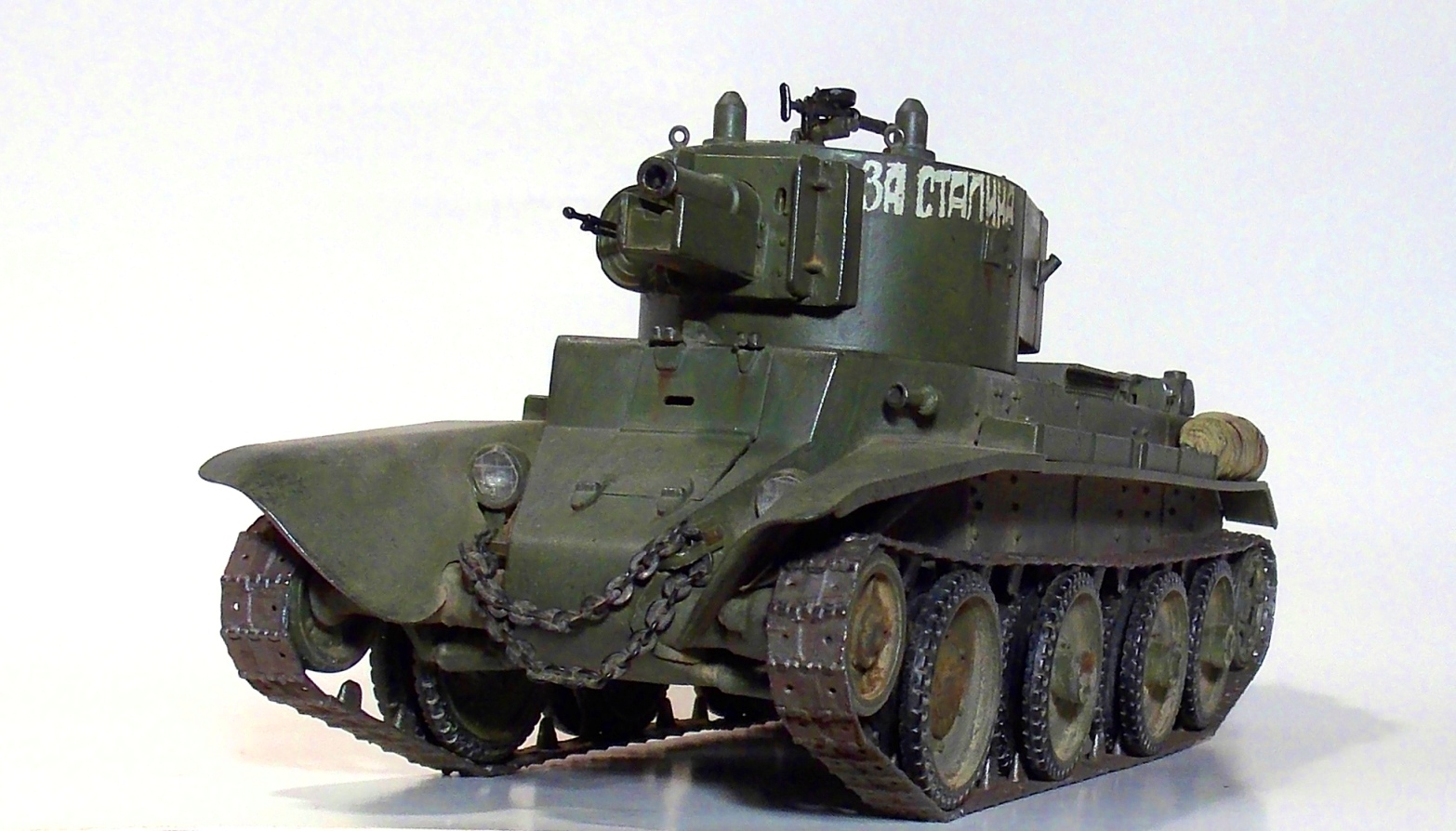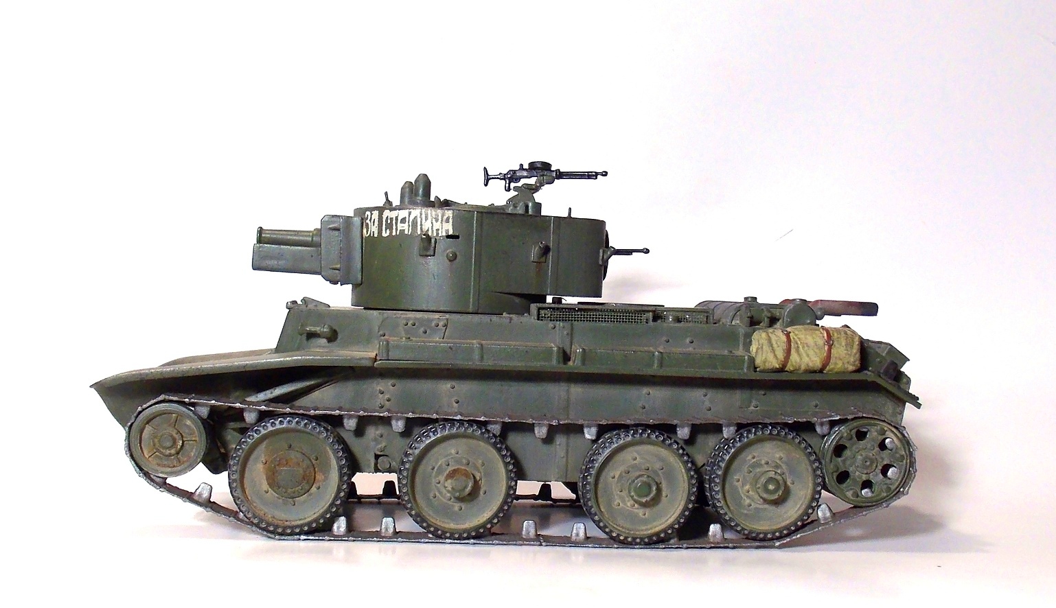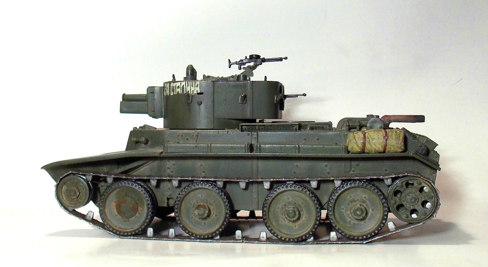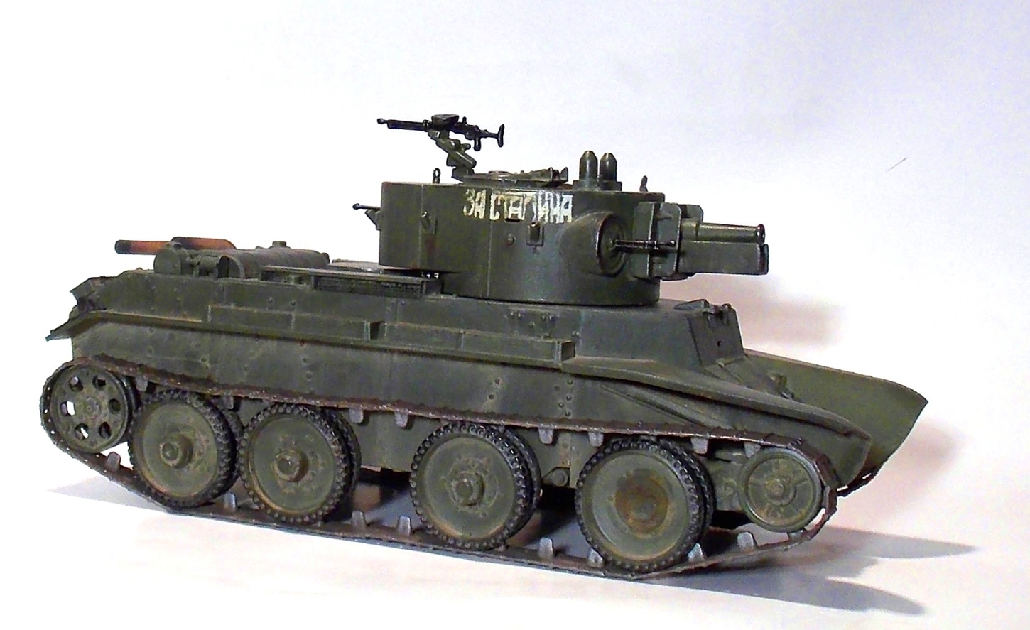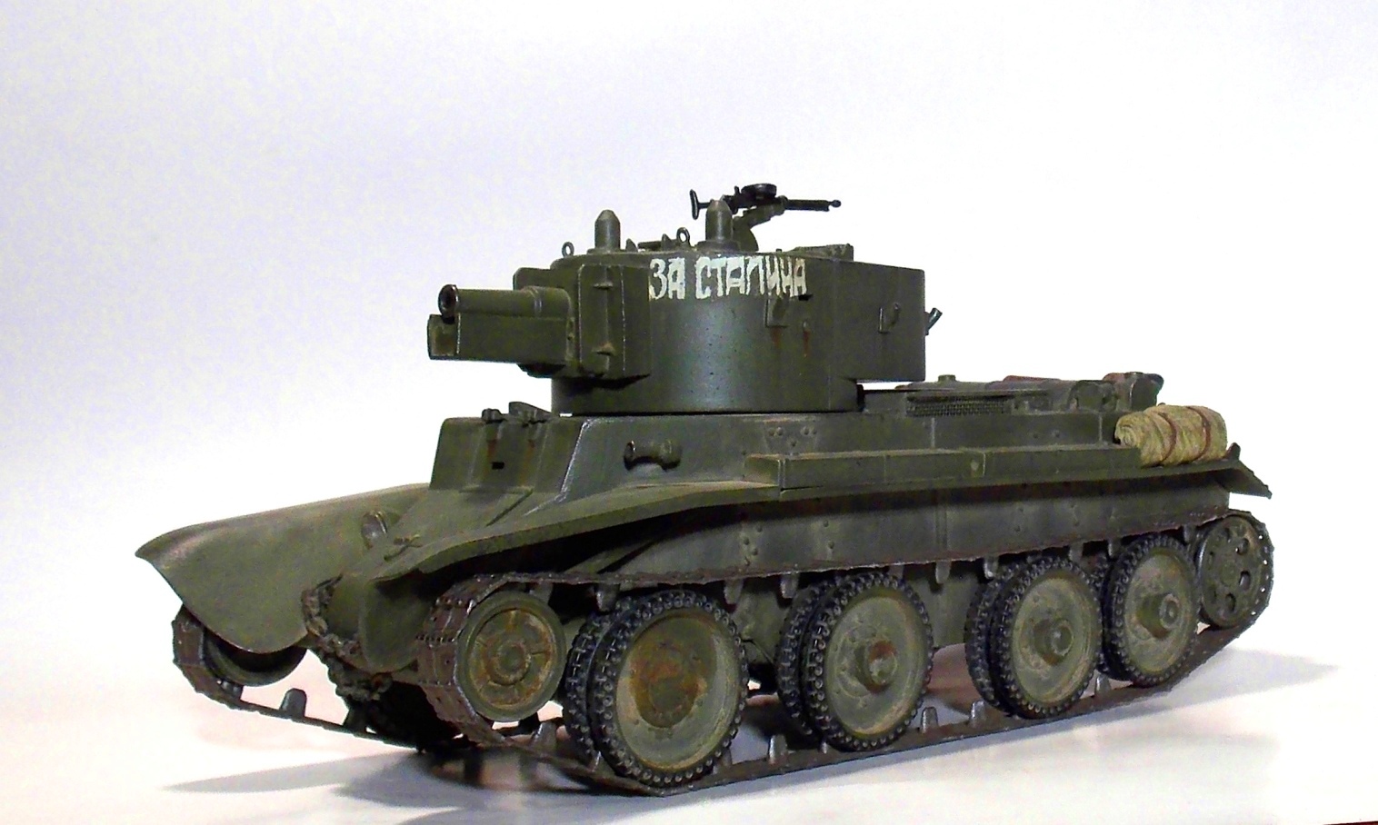 БТ-7А с надписью "За Сталина",как на фотке, воевал в ходе Советско-финской (Зимней) войны в составе 1-й легкотанковой бригады. Где-то читал,источник уже не помню, было их в бригаде 6 штук,в ходе боев все были уничтожены. Прототип воевал зимой, возможно, пыли должно быть на нем поменьше.Но без пыли-грязи смотрится как-то стерильно, ненатурально.Так что остатки осенней грязи ,думаю, танку не помешают.
