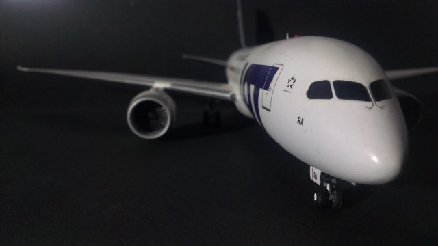 Не пойму, как можно было умудриться получить шагрень из баллона... Расшивку на крыльях и хвостовом оперении надо всё же делать и не ради пачканья, а для объёма и выделения механизации. Колёса покрашены очень лохмато, а диски - криво. Фото ужасные, на телефон снимать не надо. Заглавную фотку заменить!