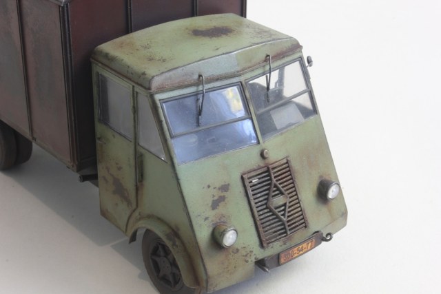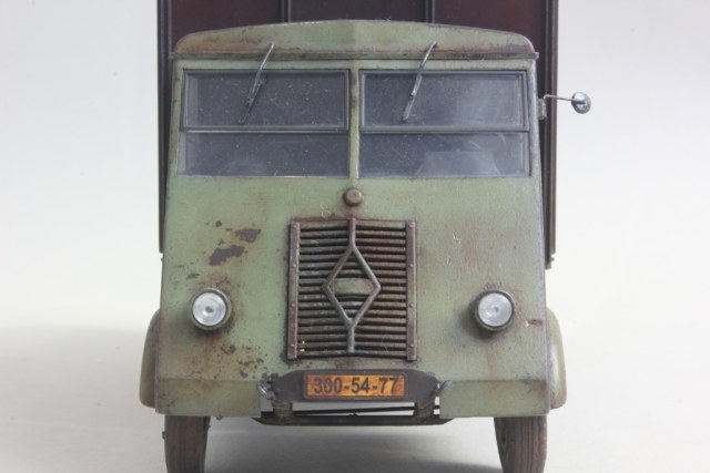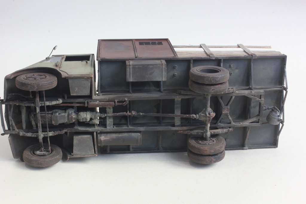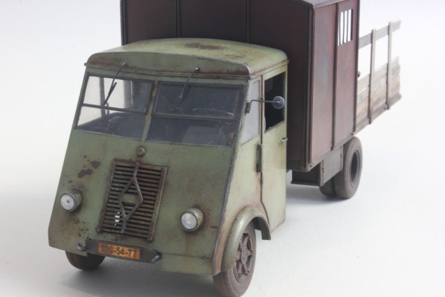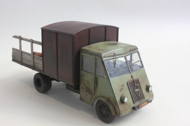 Решил сделать небольшую конверсию - оттарабанивший в Вермахте грузовик был брошен немцами, перекрашен и использовался в фермерском хозяйстве. В творческом процессе использовались аксессуары от Тамии - всякие разные из разных наборов. Была (впервые для меня) произведена тонировка маслом (не особо люблю сильные высветления и подтеки, но здесь сам бог велел.