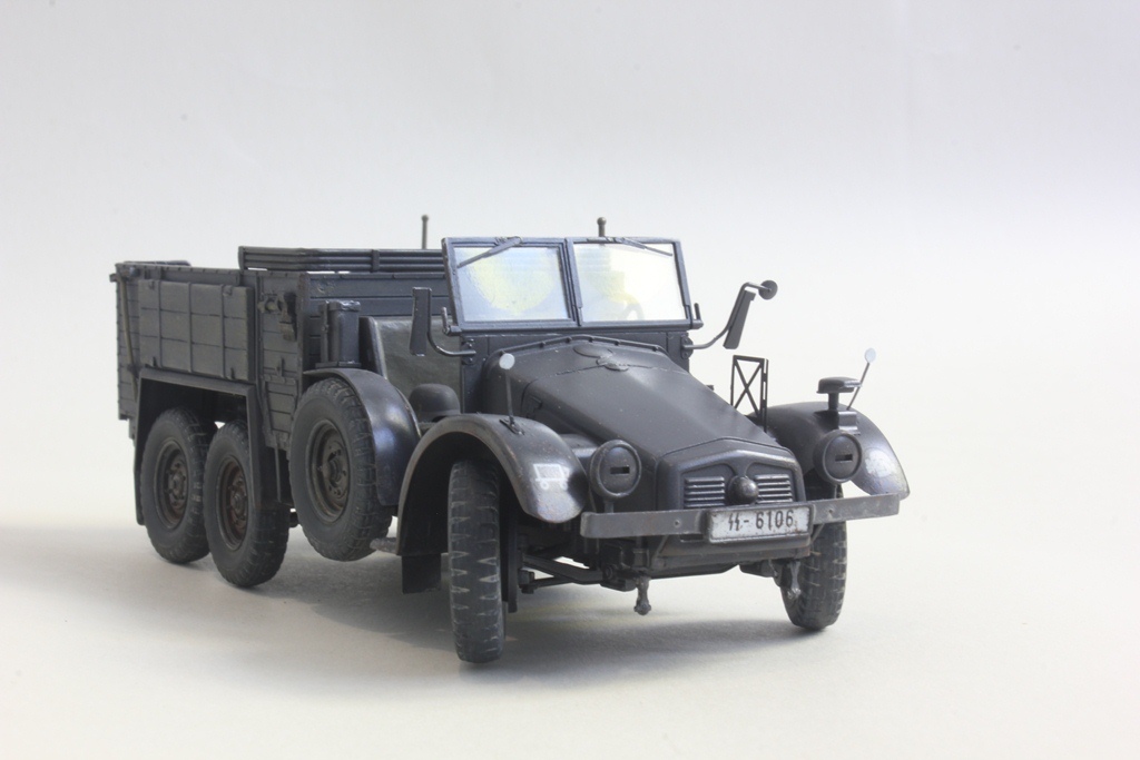 Крупп от Тамии с глобальнейшими допами от Эдуарда. Барахло в кузове - из запасов, Окраска - Mr Hobby, тонировка - мастер пигмент, MIG. Высветлений не применял и по правде не особо доволен работой. Но судить вам!