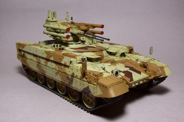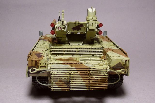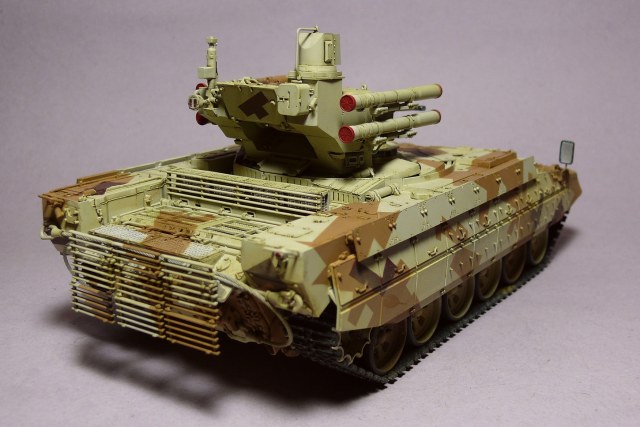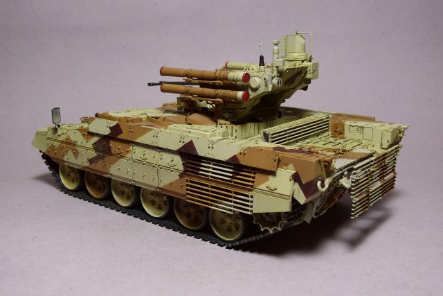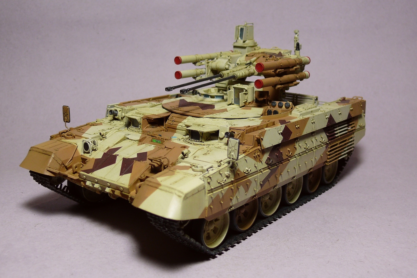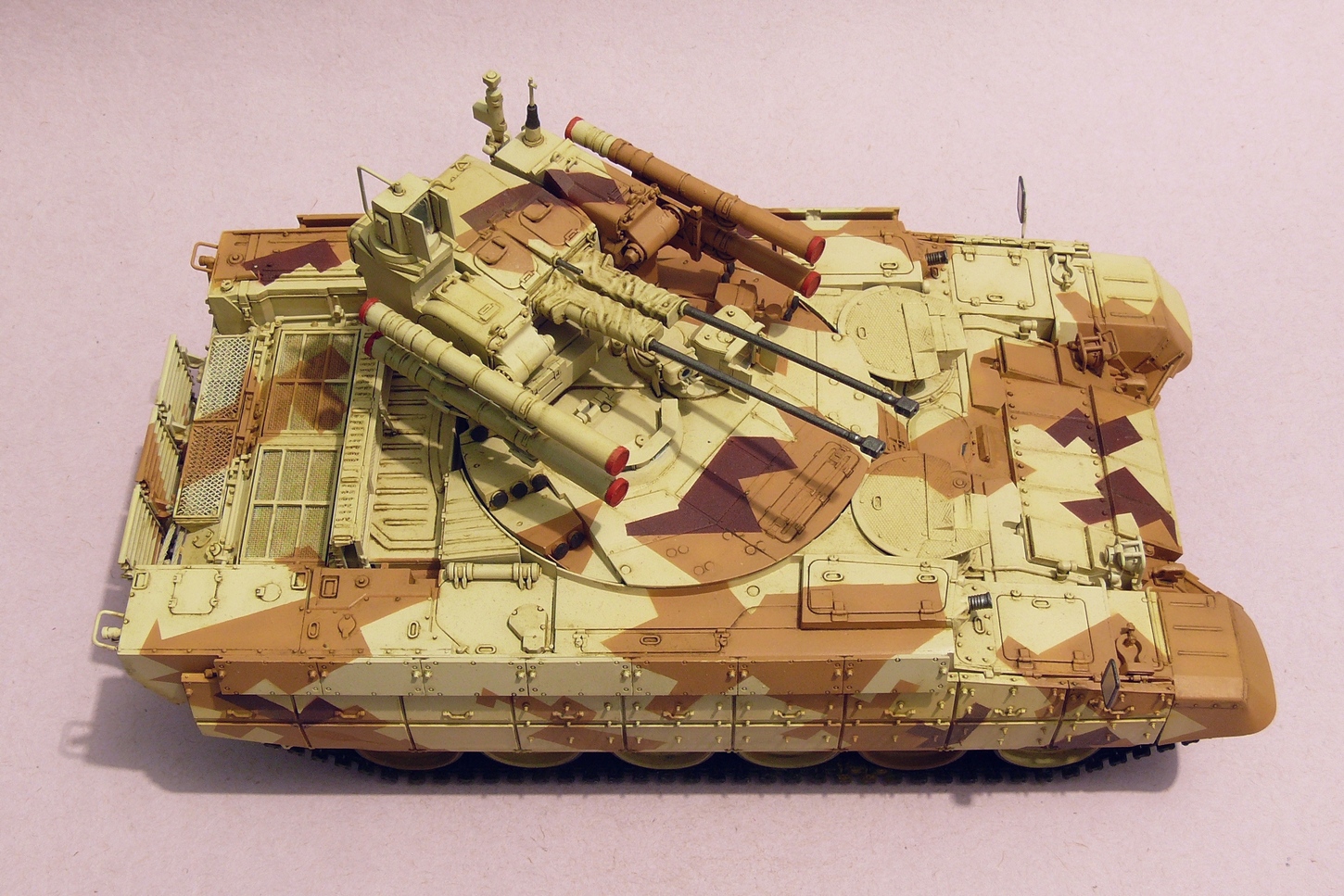 Правда почему то ствол в районе экстракторов гильз выкрашен в цвет камо, нет желобов там же. Антенну спер прапор, и резиновые уплотнители люков операторов гранатометов зажевало крышкой боевого модуля =)