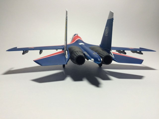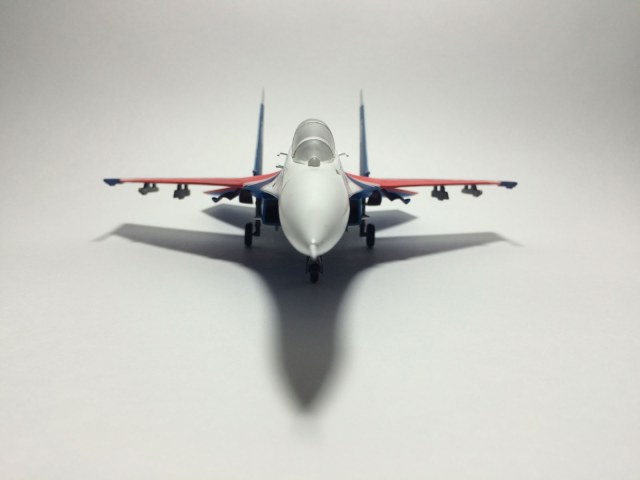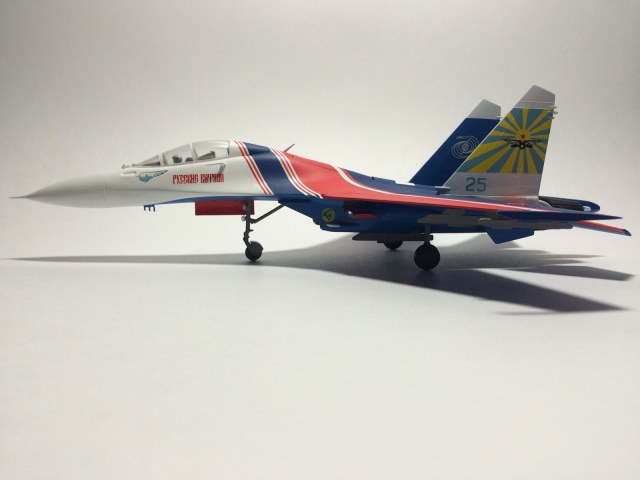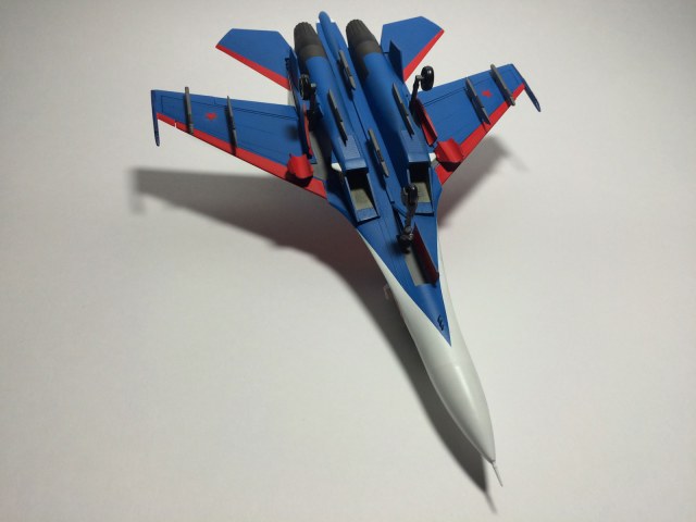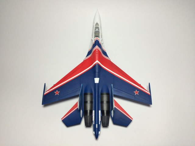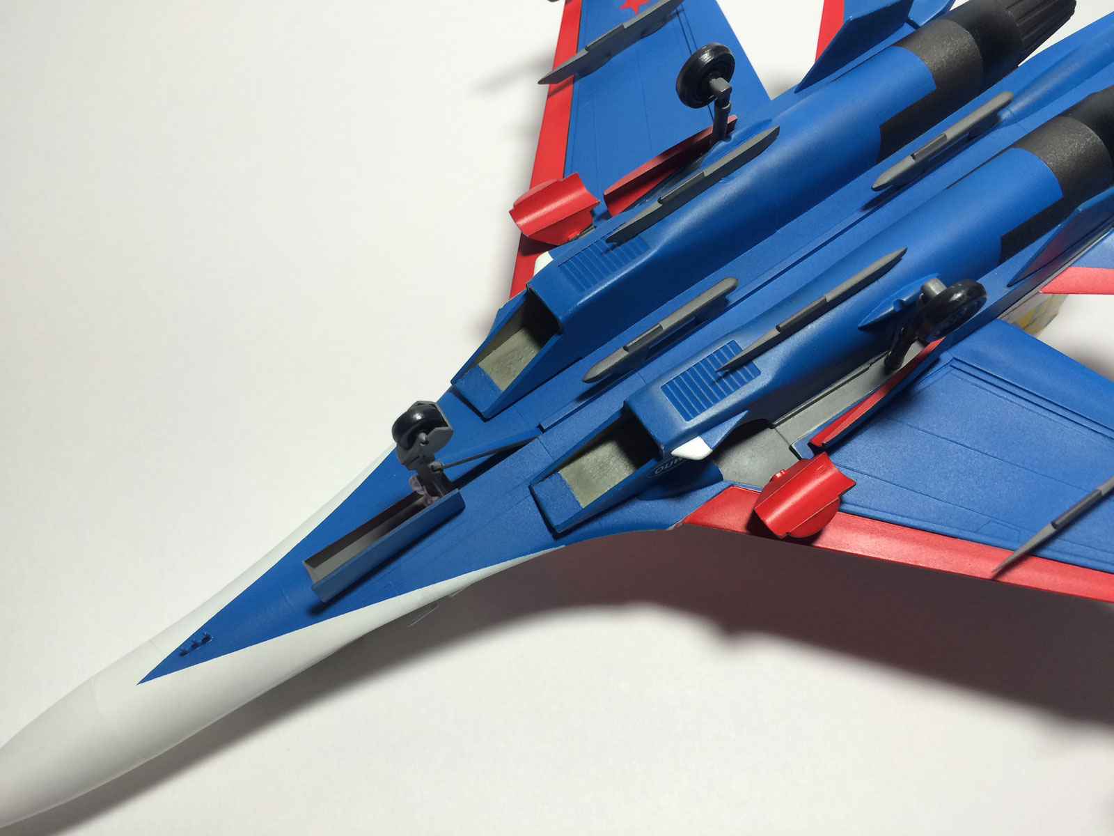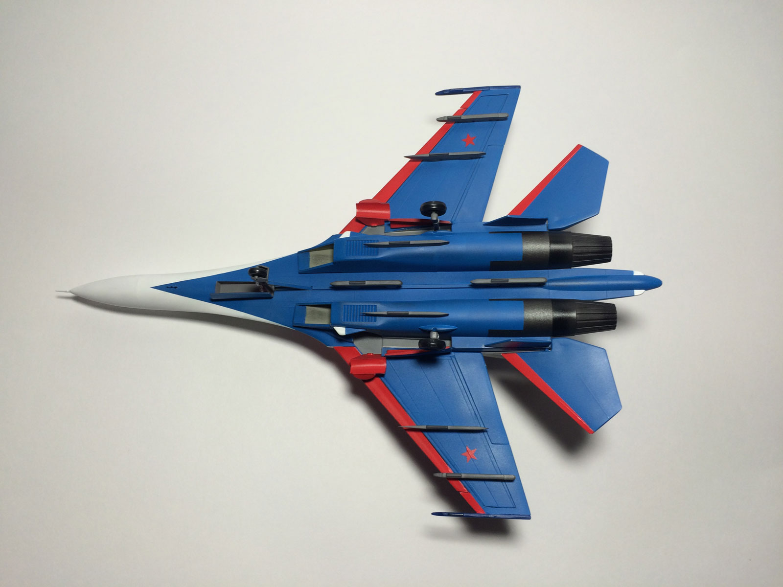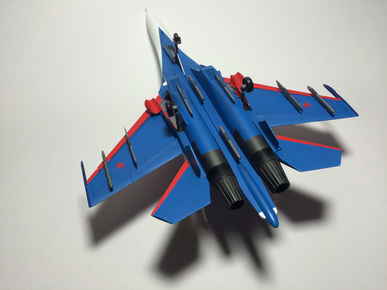 Вы покрасили очень аккуратно и чисто, но вообще без привязки к настоящему самолету, без изучения матчасти. По сути, самый откровенный отзыв дал Антон Архипов. Вот попробуйте собрать еще одну Су-27 "Звезды" - только на этот раз модель с названием Су-27СМ. Обязательно перед покраской поизучайте фотографии и попробуйте примерно повторить - вы сами улыбнетесь, посмотрев потом вот на эту первую модель